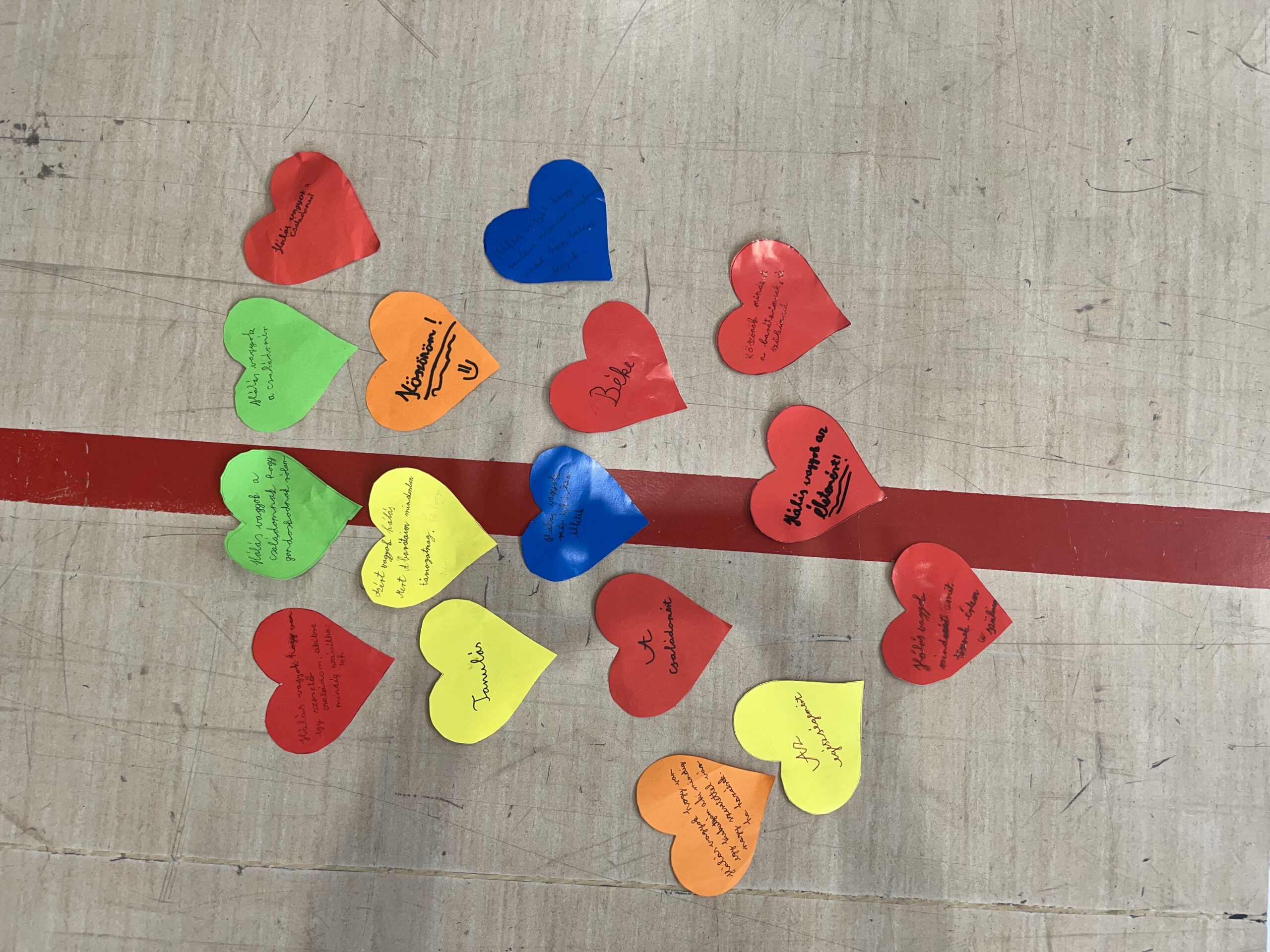 Az 5. c osztály ügyesen kivágva a szíveket, ráírták ki miért hálás.