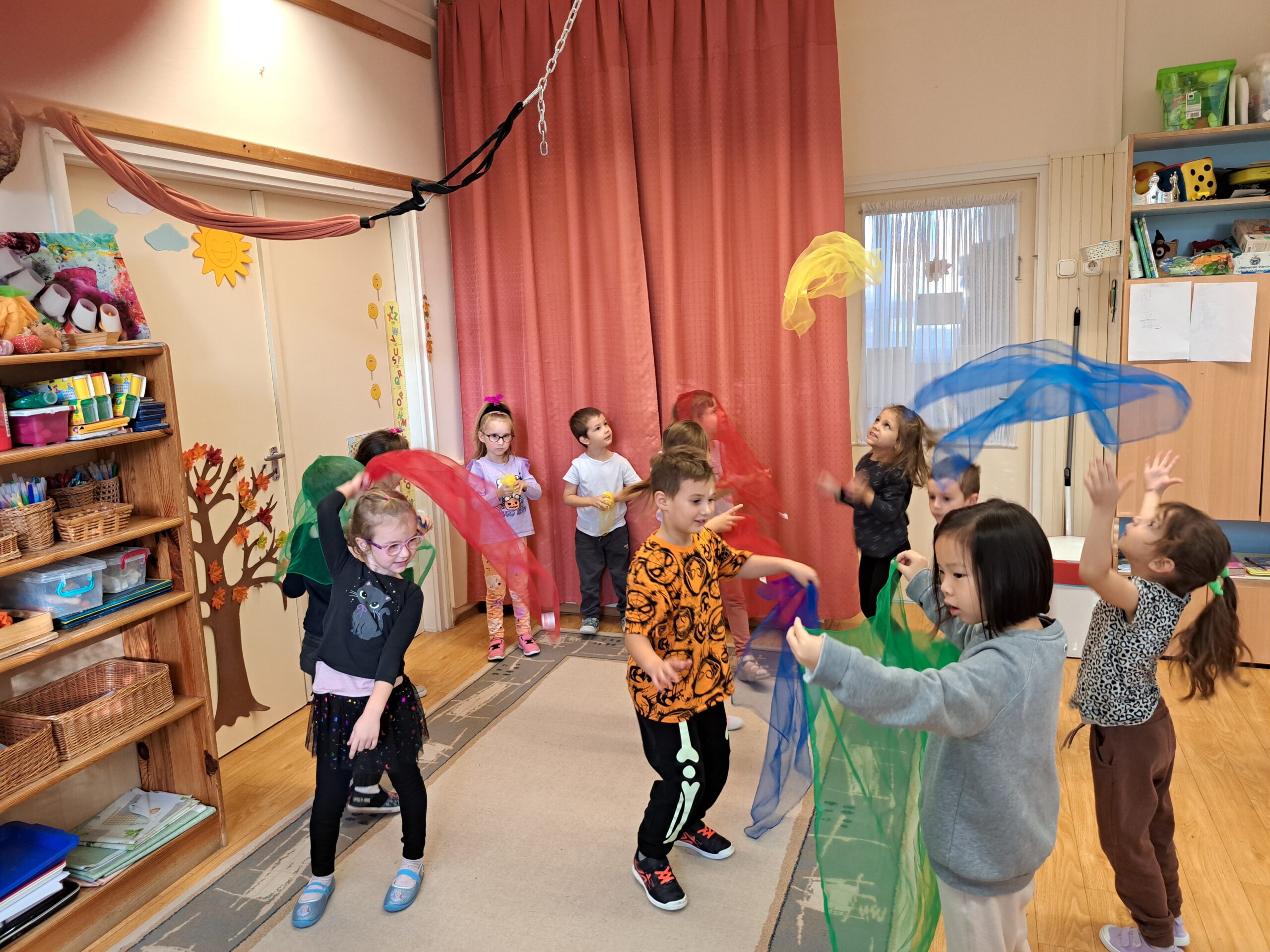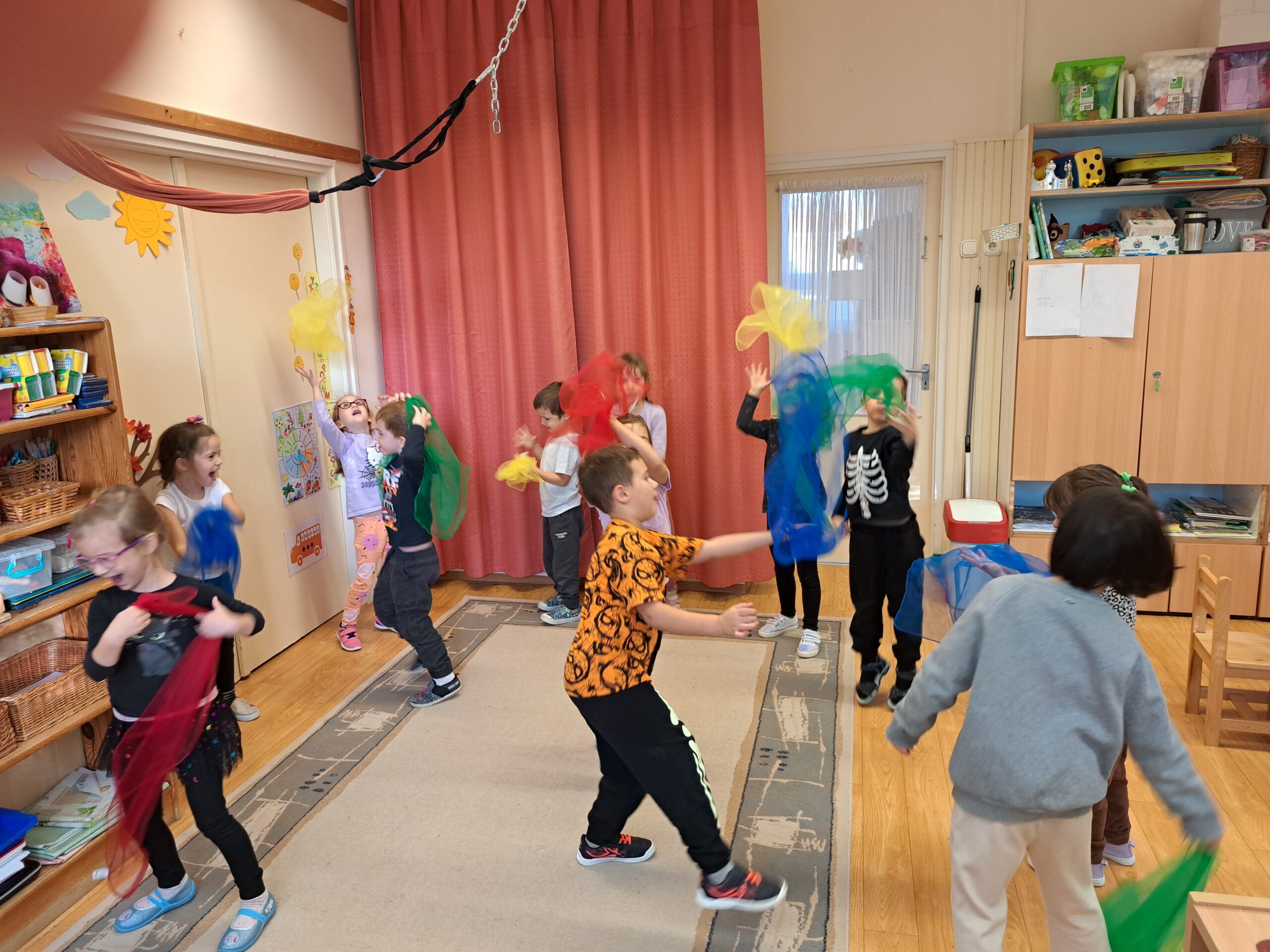 Zárásként meghallgattuk a „Boldog vagyok ” című dalt, melyre szabadon táncolhattak kis kendővel. Nagyon felszabadítóak és közössegformálóak voltak ezen alkalmaink.