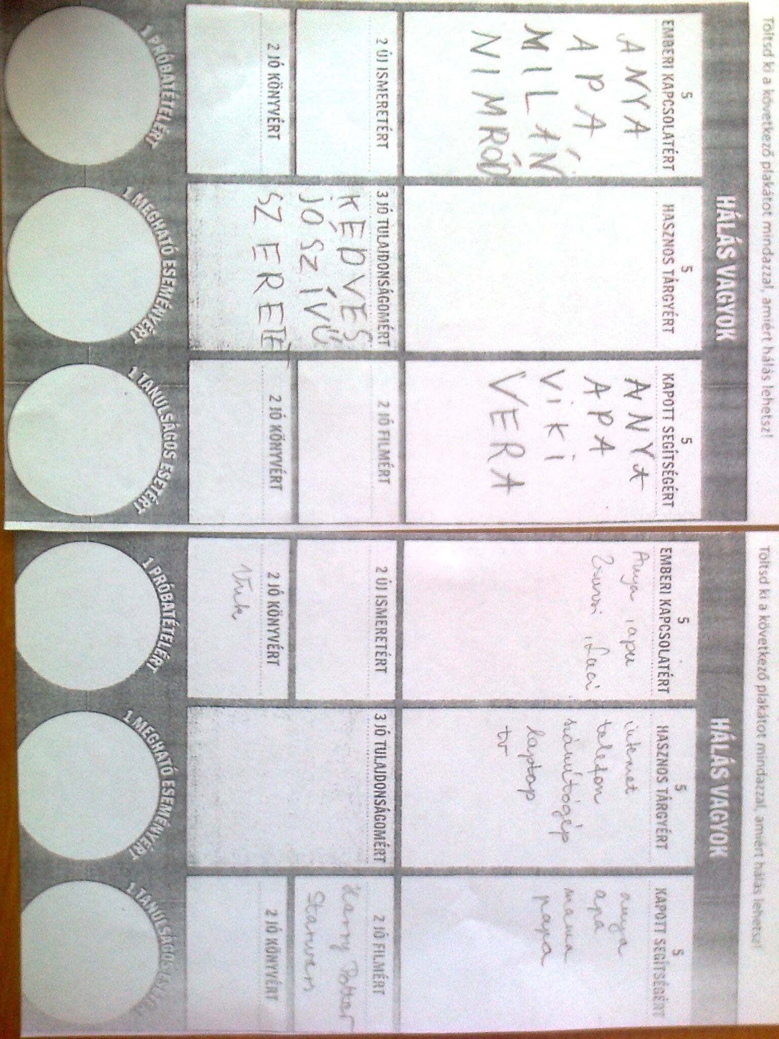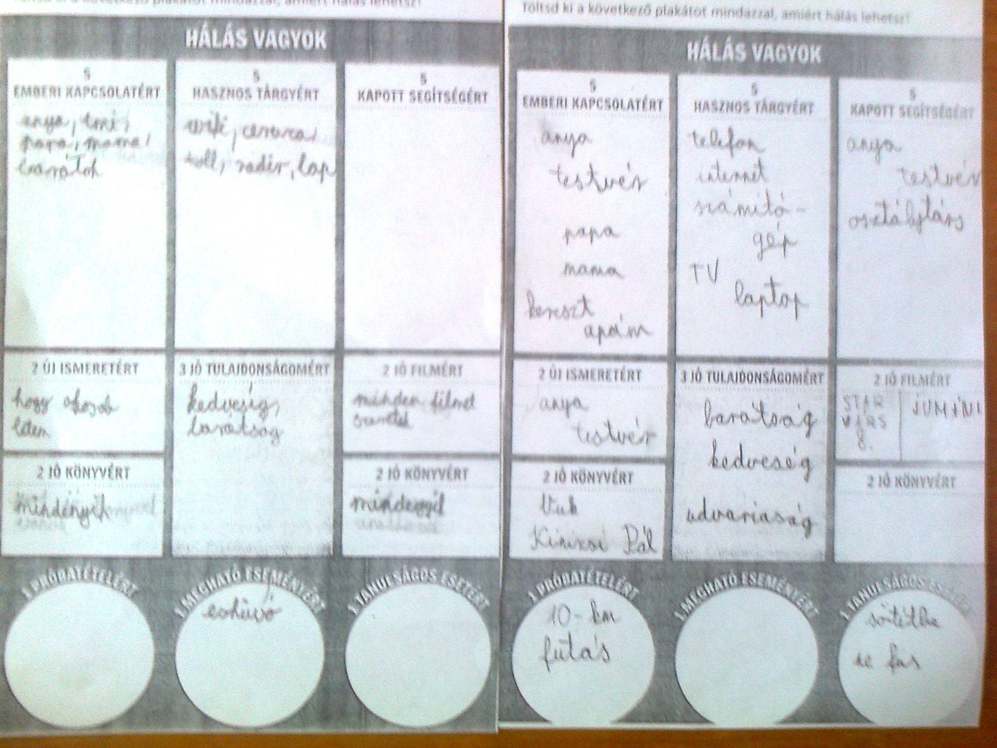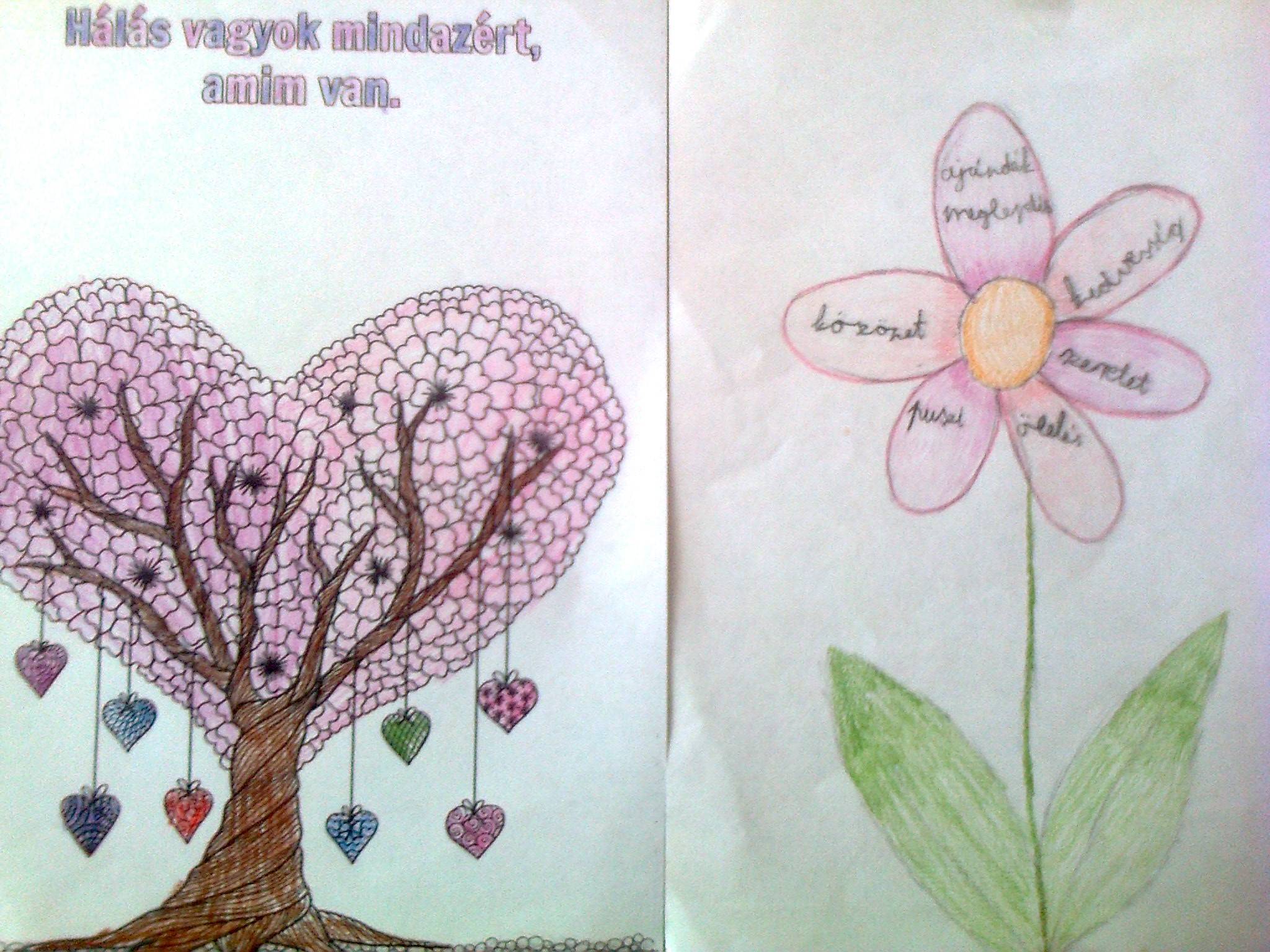 A gyerekek elmondták, leírták, miért hálásak, gyöngyszemekbe írták, nyakláncba fűzték azokat. Egymásnak is küldtek köszönőkártyákat. Utána összegyűjtötték, hogyan lehet kifejezni a hálát és beleírták a hálavirág szirmaiba.