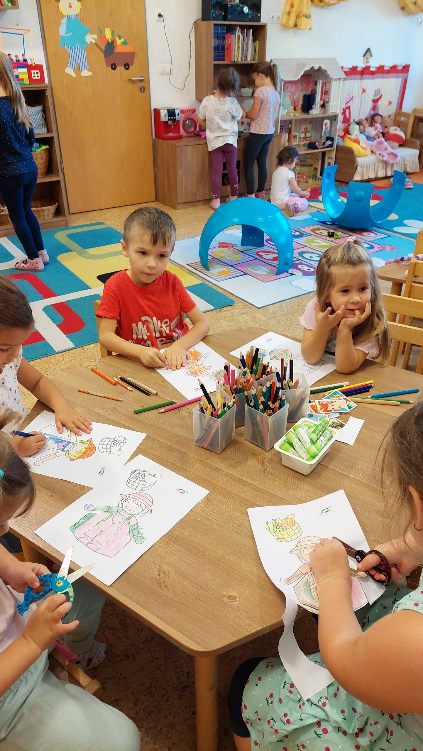 Kedden kis kertész lánykát lehetett színezni már reggel, amit ha kivágunk térbeli figura lesz. A reggeli után már tudták, hiszen tegnap elmondtam nekik, hogy Hálavirágot fogunk színezni. Mikor kiszínezték, ráírtam a hátuljára, hogy ki, miért hálás máma. A dobozt kitettük az öltözőbe a polcra, ahol a szülőknek kell majd virágot színezni, és beletenni a dobozba. Ma igaz történetet mondtam el. A menhelyi kutyusokról. Megbeszéltük a mentett kutyák helyzetét, miket érezhetnek, miket kell cselekednünk az érdekükben. A gyerekek felszabadultan beszélgettek, mondták el élményeiket, és miért hálásak. Ma egymásnak mondtak Hálát, egy kicsit nehéz volt egymás szemébe nézni, de sokuknak sikerült. Körben álltak, szivecskét adtak egymásnak, és miközben átadták, el kellett mondani miért hálás a pajtásának. Mindig megható számomra, amikor megháláják egymásnak, hogy „…mert játszik velem, …mert a barátom, ….mert odaadta a ceruzáját, ..mert itt van mellettem, …mert legózött velem.” Zárásként elmondtam a holnapi feladatainkat.