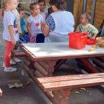A reggelt tornával kezdtük, karikával mozogtunk. Nagyon ügyesek voltak a kicsik is. A Hála-fa színezése sokukat vonzotta, szépen színeztek a legtöbben, szivárványos lett a kép. Ma Mókus Peti látogatott el a gyerekekhez, báb alakban, és ma Ő mesélte el A kismókus fél dióját. A mese végén mindenki megsimogatta Petit. Egy kis körjáték, verselés is belefért a délelőttbe. Az udvaron kis csapat indult körbe, és Hála virágot osztott mindenkinek az óvodában dolgozók között. Nagyon ügyesen mondták el, hogy mit kell csinálni, hova kell bedobni, úgyhogy egy idő után, már egyedül engedtem őket a feladatukra.