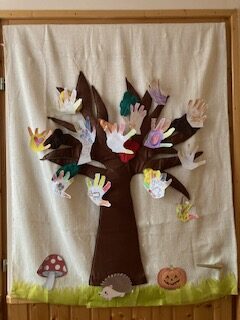 Végül, elkészítettük Hálafánkhoz a tenyérnyomatokat, melyben mindenki megjeleníthette, lerajzolhatta, miért, vagy épp kiért tud hálás lenni.