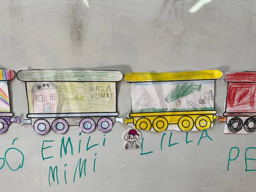 Először én mutattam be a mozdonyt, elmondtam, hogy miért vagyok hálás, és feltettem a táblára. Hasonlóan jártunk el a gyerekekkel is. Miután mindenki elkészült, beszálltunk a „hálavonatunkba” és jókedvűen vonatoztunk.