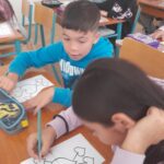 Bella dalát. A gyerekek egy összekapcsolt szíveket ábrázoló rajzon, beírták a