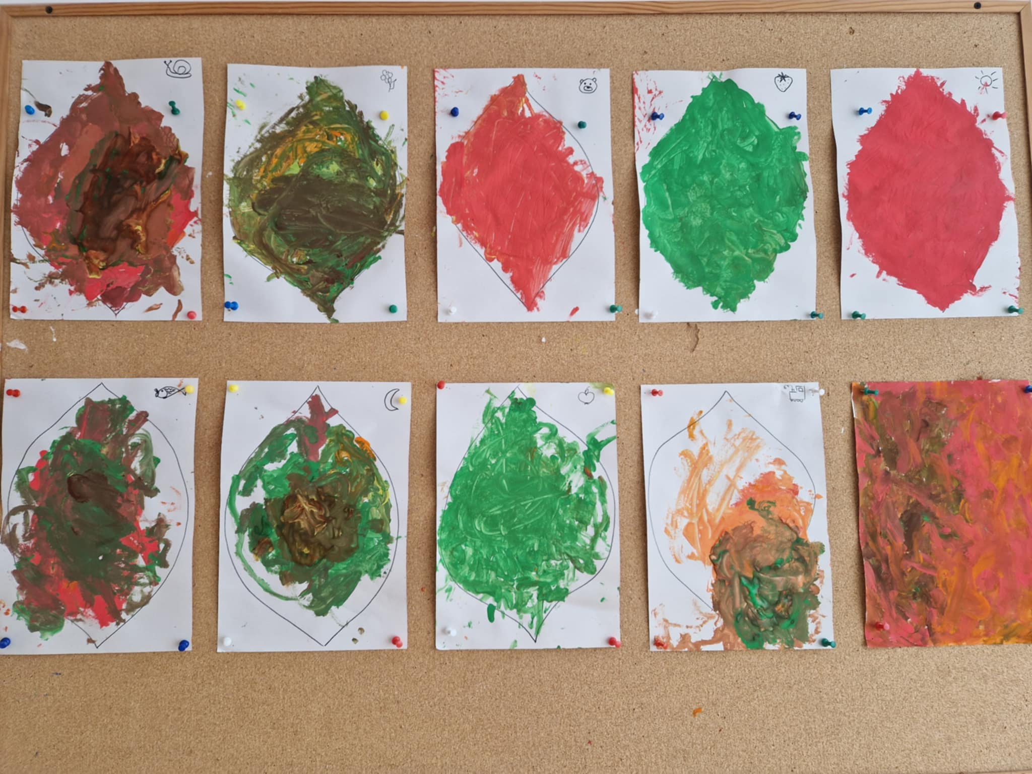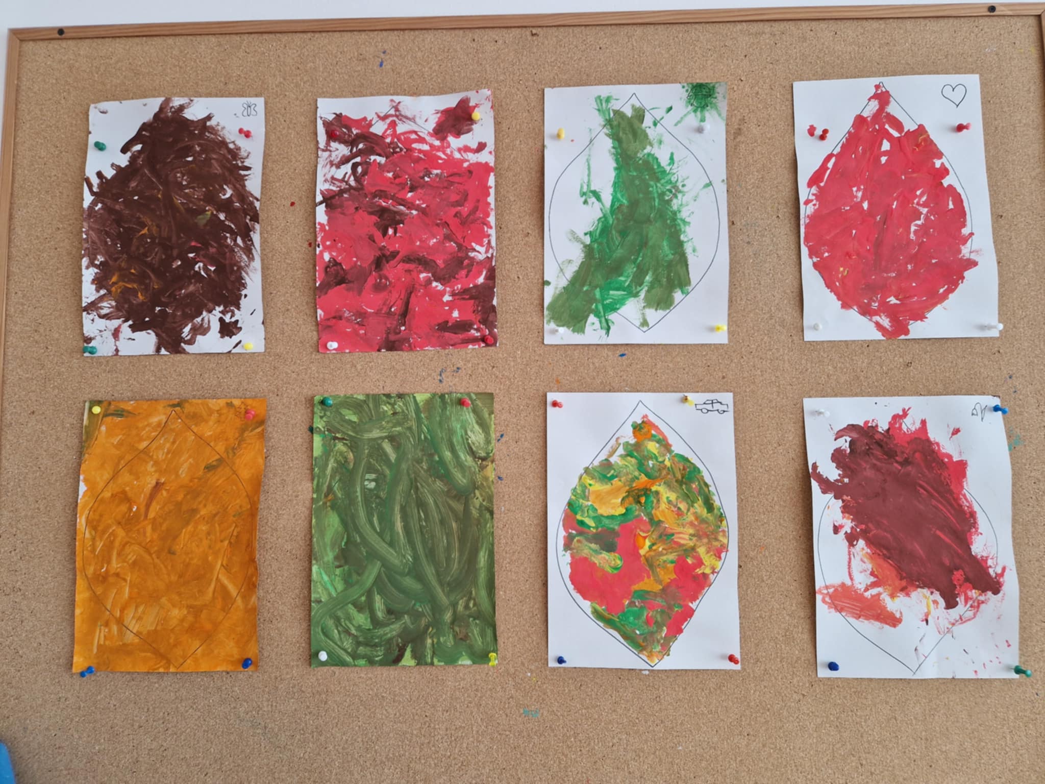 Fessünk őszi faleveleket, minél színesebbeket megköszönve ezzel a Napnak a kedvességet és a segítséget (sárga, piros, zöld, barna tempera felhasználása).