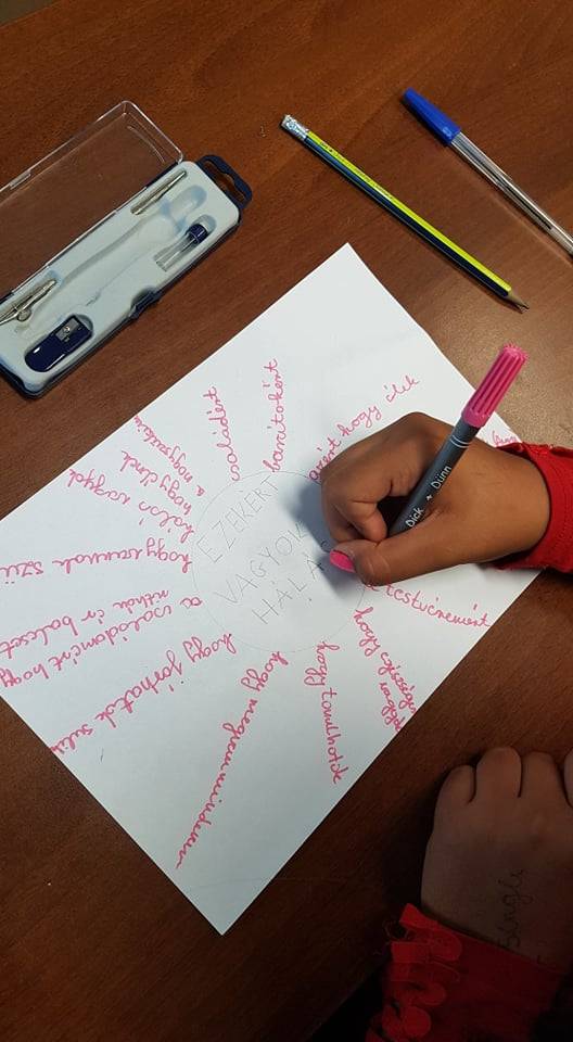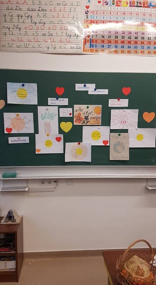 Szeptember a hála hónapja. Tanítványaim többsége hálás az életért, a Földért, anyáért, apáért, a testvéreiért, az ünnepekért, az állatokért, a növényekért, a barátokért, a természetért. Hálásak, hogy megvan mindenük, hogy járhatnak iskolába, hogy egészségesek. Eleinte nem tudták megfogalmazni, szavakba önteni, hogy mit is jelent a hála, de óra végére már mindenkiben pontosan körvonalazódott maga a fogalom is, és a hozzá kapcsolódó érzés is, amit aztán szépen megfogalmaztak és le is írtak.
