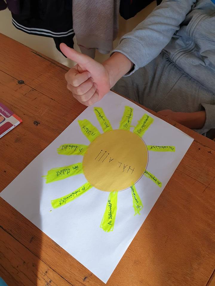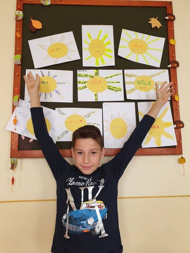 Az elméleti rész hálanap készítéséből állt, amit a táblára felragasztottunk., majd minden tanuló megrajzolta a saját hálanapját. Zenei aláfestésként szolgált a segédlet zeneszáma. A következő feladatot a dalt dúdolgatva vittük végbe.Az ötödikesek hála levelet írtak, amit a nap folyamán át kelett adni a kijelölt személynek ……Máris kicsengettek. .. Ez volt a legelső boldog óránk, hamar eltelt. ….A mi kis osztályunk hálás, hogy részt vehet a Boldogságóra programban…..