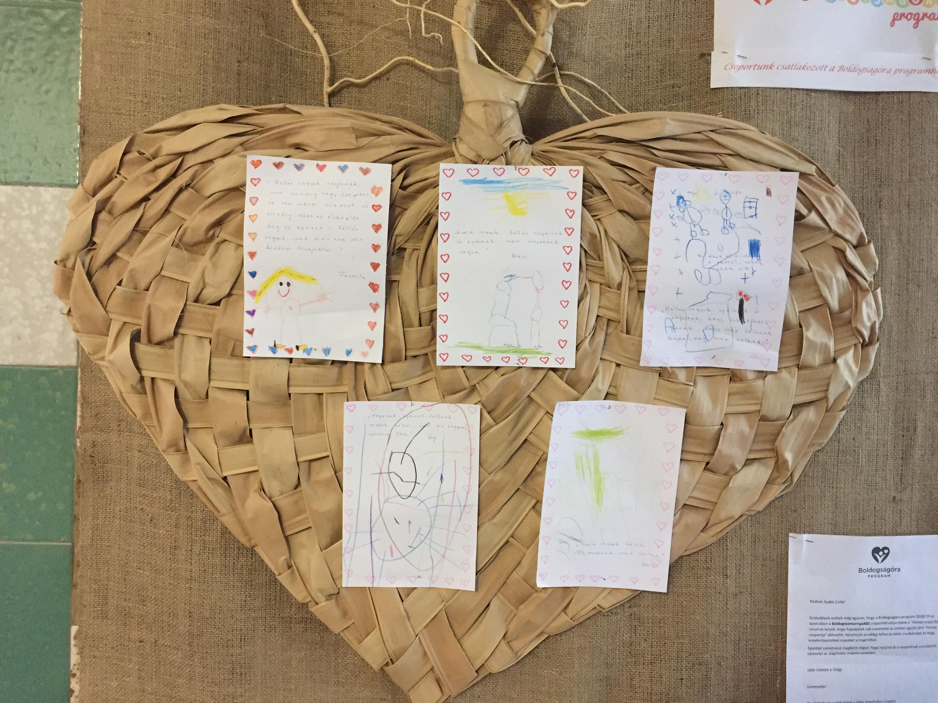 A hálafa történetének elbábozását követően beszélgettünk, és akinek kedve volt, megfogalmazhatta, mi mindenért lehetünk hálásak. A megfogalmazott gondolatokat a nagyobb gyerekek le is rajzolták, az elsősorban édesanyjuknak és édesapjuknak szóló üzeneteket hálafalunkon mutattuk meg a szülőknek. A kisebb gyermekek dolgát a munkafüzet kész rajzai könnyítették meg, ők színezéssel választották ki a képek közül, miért is hálásak.