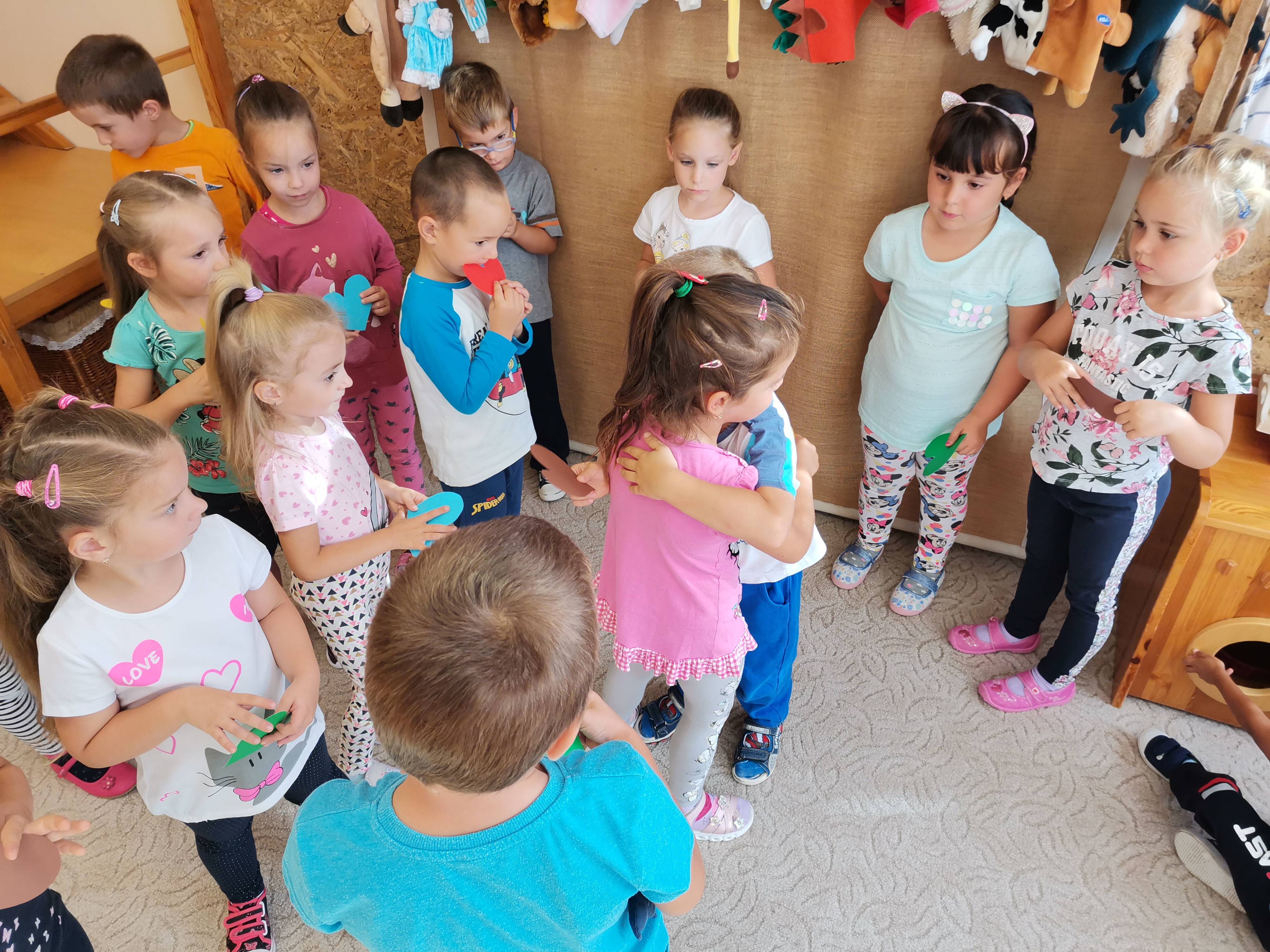 Célunk a 2020/2021-es nevelési évre, a Boldog Óvoda programsorozat folytatása. A derecskei Mese-Vár Óvoda és Bölcsőde, Százszorszép csoportjának első boldogságóra foglalkozásának témája a hála gyakorlása. „Fújj-fújj” mozgásalapú relaxációs gyakorlattal kezdtünk, majd ezt követte a hála fogalmának magyarázata, értelmezés. Előzőleg, színes szivecskéket rejtette el a csoportszobában, melyeket a gyerekeknek kellett megkeresni. Aki talált egyet, elmondhatta csoporttársainak, hogy ki miért hálás. Ez jó alkalom volt arra, hogy minél jobban erősödjön bennük a hála szó jelentése. Ezután hála játékot játszottunk. Csukott szemmel kellett a saját tengelyük körül megfordulni, majd tapsra kinyitották a szemüket és aki legközelebb állt hozzájuk, őt ölelték meg. A boldogság és hála érzetét igyekeztem Bagdi Bella Hálás vagyok című dalával is erősíteni. Körbe ülve, átkarolva egymást a gyerekek kérésére, többször is meghallgatuk. Szem előtt tartva a csoport és egyes gyerekek fejlettségi szintjét, úgy érzem, hogy az első boldogságóra foglalkozásunk sikeres volt, s mindannyian nagyon várjuk a következő különleges alkalmat.
