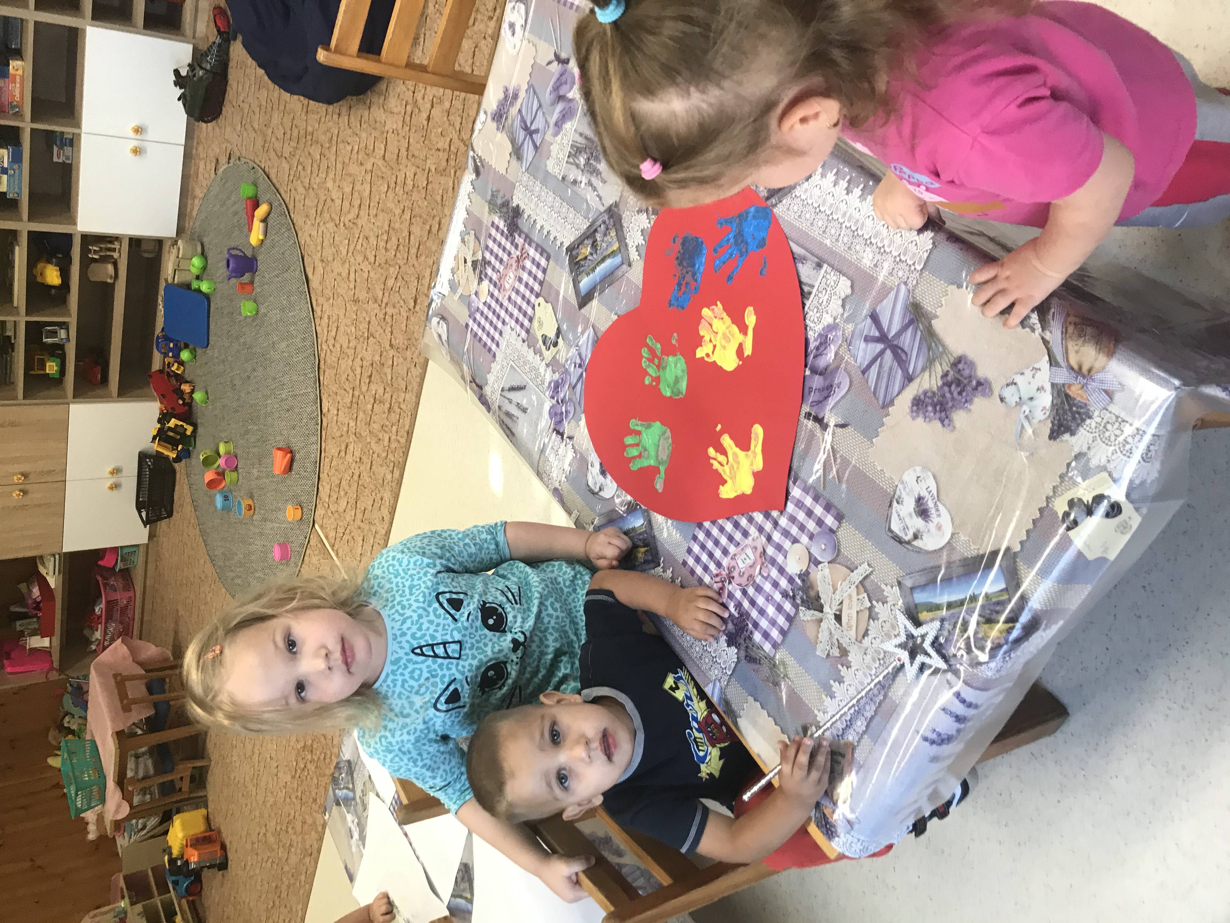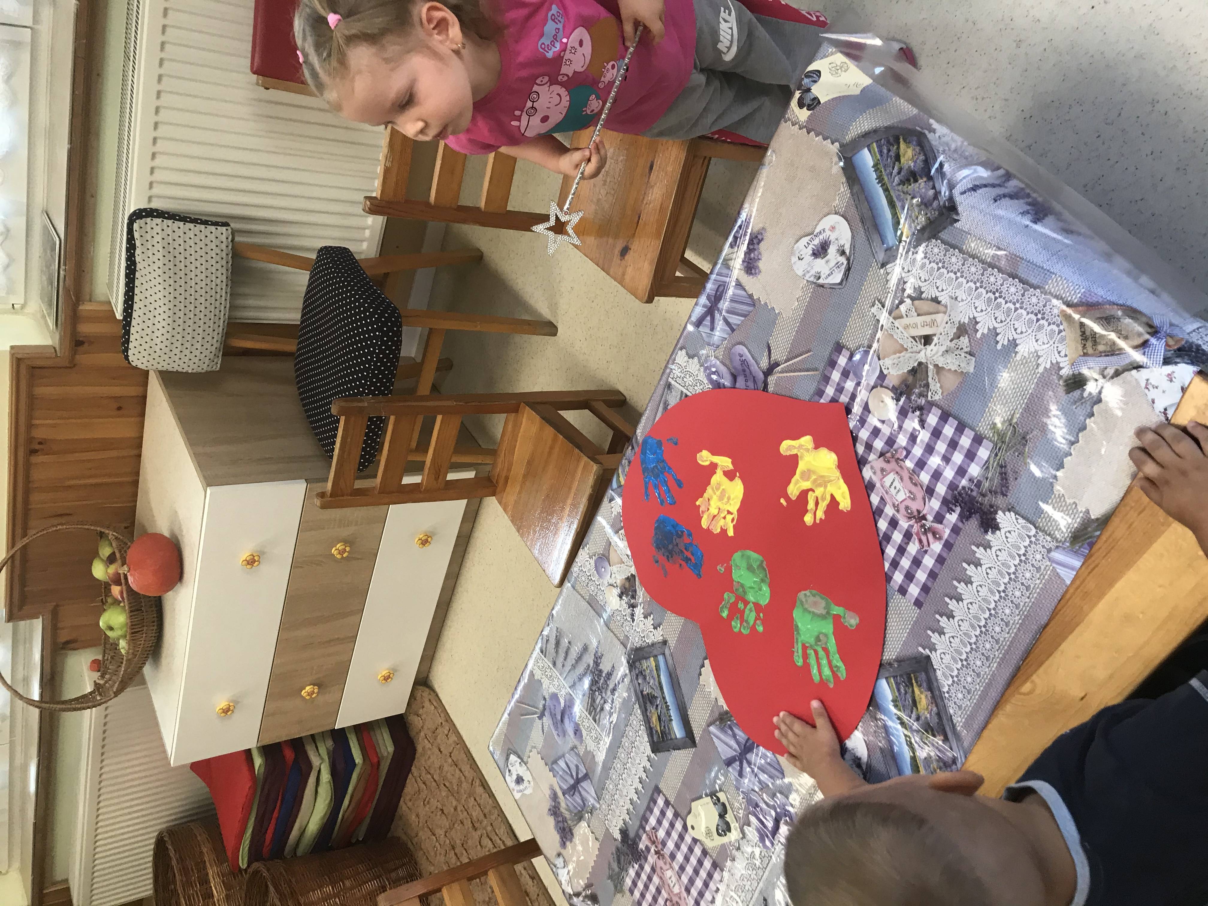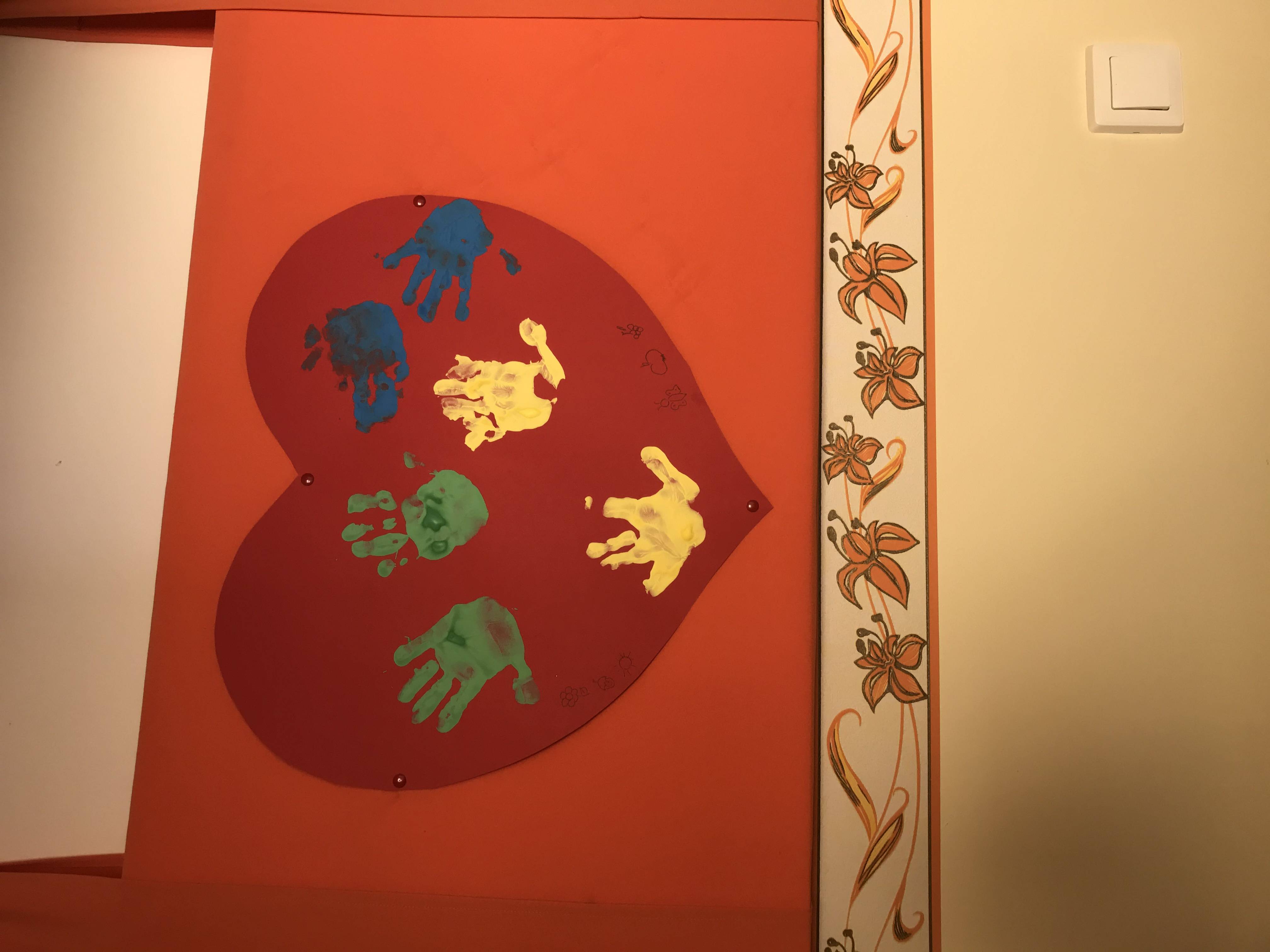 A mini csoportosaimmal beszélgettünk a szeretetről, hogy kiket és miket szeretünk. Megbeszéltük, hogy szeretjük a szüleinket, családunkat és a társainkat. Szeretünk óvodába járni, s hálásak vagyunk, hogy itt lehetünk együtt és játszhatunk egymással. Közösen készítettünk egy szívet, melyre mindenki kézlenyomatát rátettük. Ez a mi kis hála- szívecskénk!