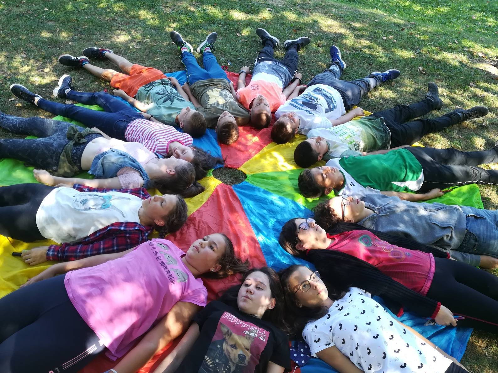 Immár Boldog Iskolaként az idei tanévtől a felső tagozatban is útjára indítottuk a Boldogságóra programot. Ebben az évben a hetedik osztályosok vehetnek részt a programsorozaton. A gyerekek már nagyon várták az első Boldogságórát, melynek témája a HÁLA gyakorlása volt. Az első foglalkozást a kora őszi napsütésnek köszönhetően a szabadban tarthattuk meg. Miért is lehetünk hálásak … Bizony, nem könnyű erre a kérdésre válaszolni. A ráhangoló beszélgetés egy asszociációs körrel kezdődött, ahol a gyerekek Andi néni vezetésével először is asszociációkat gyűjtöttek a „HÁLA” szóra. Majd egy kicsit mindnyájan elgondolkodtunk, mennyi minden is van az életünkben, amiért hálásak lehetünk, és amiket a hétköznapokban leginkább természetesnek gondolunk.