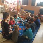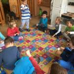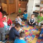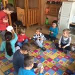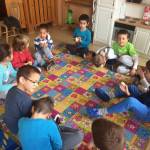A hála témáját a csoportunkban egy hétfői napon, délelőtt dolgoztuk fel. A hét eleji szokás beszélgető körünkből kiindulva beszélgettünk róla. Egy kis játék előzte meg, ami egymásra figyelést kívánt meg. Filcből készült faleveleket kellett tovább adni egymásnak, úgy hogy ne érjenek össze. Egymást bíztatták, és figyeltek hogy hol tartanak a levelek. Az, hogy mit is jelent a hála, nem igazán tudta senki megmondani, de miután elmagyaráztam nekik, mindenki elmondta egymás után, kinek vagy minek és miért hálás. Több mint a fél csoport a társának köszönte meg azt, hogy a barátja és játszik vele. Volt aki az anyukájának, volt aki azért, mert aznap ebéd után jött érte az anyukája, vagy mert a csoport legnépszerűbb játékával játszhat. Készítettünk közösen egy hála-táblát, amire a gyerekek rajzolhattak pöttyöt annak a társuknak, akinek valamit megköszönnek. Ezt a nap folyamán tovább bővíthették.