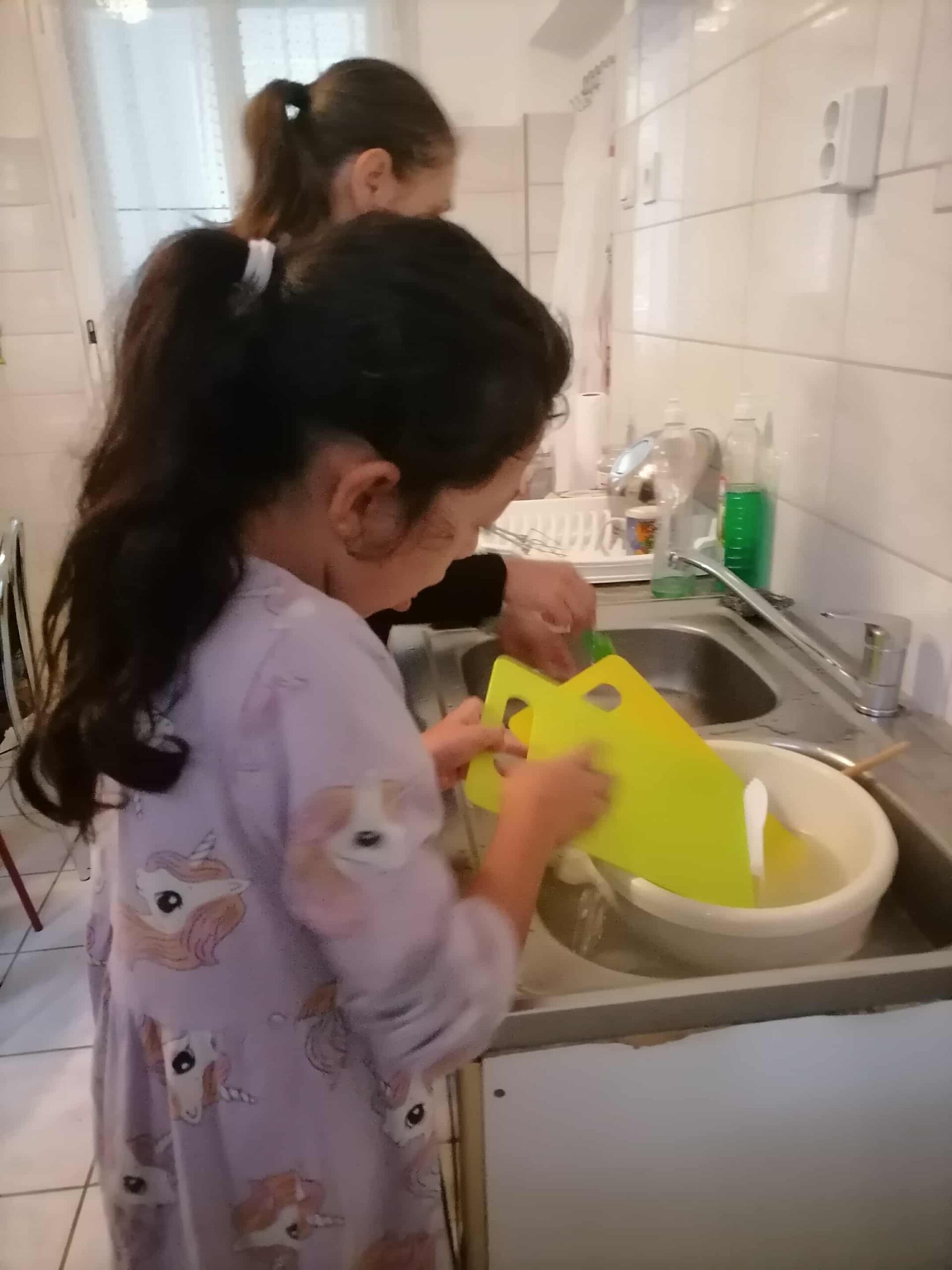 Hálát adtunk az iskolakertben termett zöldségekért, és gyümölcsökért is. Magaságyásunk termését: a koktélparadicsomot tízóraihoz fogyasztjuk rendszeresen. Az almafa terméséért egy almás sütemény sütésével adtunk hálát, melyet irányítás mellett, önállóan készítettek el a gyerekek. Közben meghallgattuk Bagdi Bella dalát a háláról.