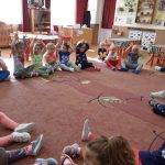 Ez a második óránk a csoportban. Először nagyon sokan hiányoztak. Újra relaxációval kezdtük. Mindenki elképzelte a saját várát. Színét, formáját stb. Készítettem egy várat az ajtóra, ami kis segítség számukra,de direkt nincs „rendesen” kiszínezve. Megbeszéltük,hogy minden hónapban elmegyünk a várba, és mindig feljebb jutunk a lépcsőn. Ezután meghallgattuk a Szép nap kezdetű dalt, majd körbeadtunk egy kis szívecskét . Nagyon ügyesek voltak, legközelebb megpróbáljuk több szívecskével. Ezután elárultam nekik,hogy a csoportban több ilyen szívecske is elbújt, elindultunk hát megkeresni őket. Minden megtalált szívecskénél megbeszéltük az ott lévő tárgyért miért vagyunk hálásak. A végére kezdték ügyesen egyedül megfogalmazni. Nagyon élvezték a keresgélést. Amikor az összes szívecskét megtalálták,akkor odamentünk az ajtóhoz,ahova felragasztottam a vár képét és elhelyeztük a kis tulipánt az első lépcsőre. Közben újra szólt a dalunk. A dal közben aranyosan napocskáznak a kezükkel, és ölelik meg magukat. A gyerekek segítségével felragasztottuk a szívecskéket is a vár köré. Izgatottan várjuk a következő órát.