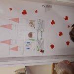 Ez a második óránk a csoportban. Először nagyon sokan hiányoztak. Újra relaxációval kezdtük. Mindenki elképzelte a saját várát. Színét, formáját stb. Készítettem egy várat az ajtóra, ami kis segítség számukra,de direkt nincs „rendesen” kiszínezve. Megbeszéltük,hogy minden hónapban elmegyünk a várba, és mindig feljebb jutunk a lépcsőn. Ezután meghallgattuk a Szép nap kezdetű dalt, majd körbeadtunk egy kis szívecskét . Nagyon ügyesek voltak, legközelebb megpróbáljuk több szívecskével. Ezután elárultam nekik,hogy a csoportban több ilyen szívecske is elbújt, elindultunk hát megkeresni őket. Minden megtalált szívecskénél megbeszéltük az ott lévő tárgyért miért vagyunk hálásak. A végére kezdték ügyesen egyedül megfogalmazni. Nagyon élvezték a keresgélést. Amikor az összes szívecskét megtalálták,akkor odamentünk az ajtóhoz,ahova felragasztottam a vár képét és elhelyeztük a kis tulipánt az első lépcsőre. Közben újra szólt a dalunk. A dal közben aranyosan napocskáznak a kezükkel, és ölelik meg magukat. A gyerekek segítségével felragasztottuk a szívecskéket is a vár köré. Izgatottan várjuk a következő órát.