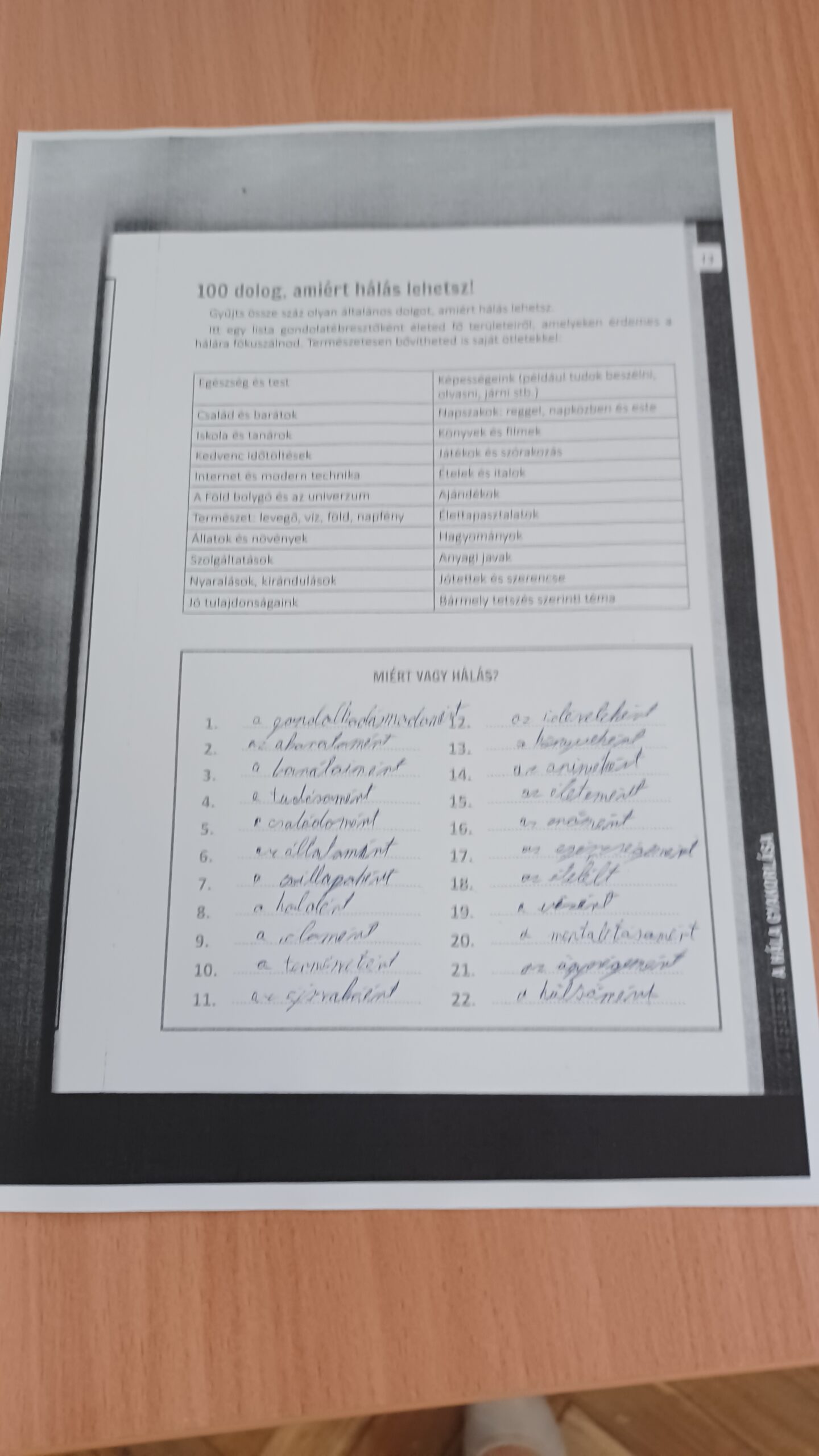 - Téma: A boldogságfokozó hála