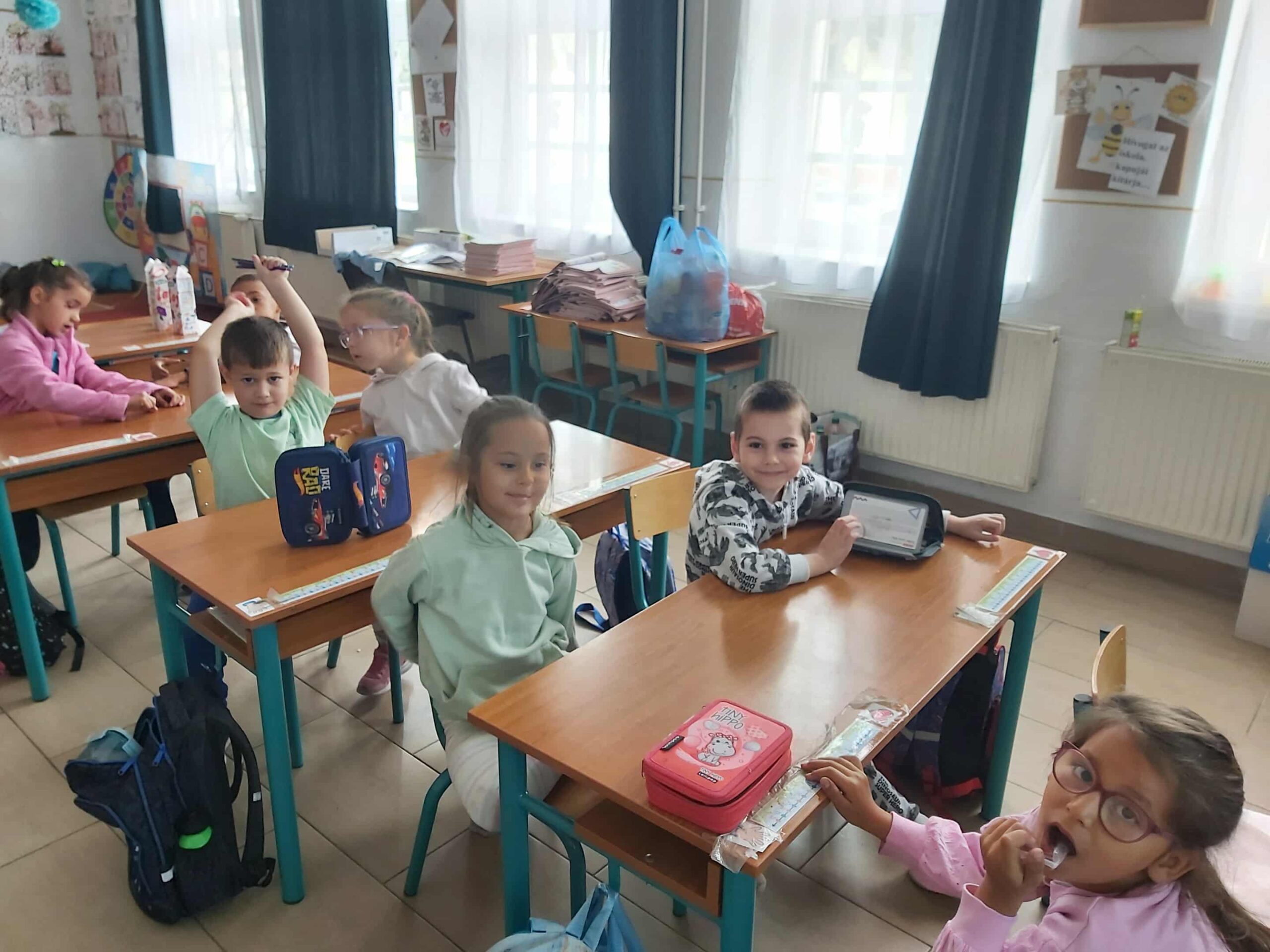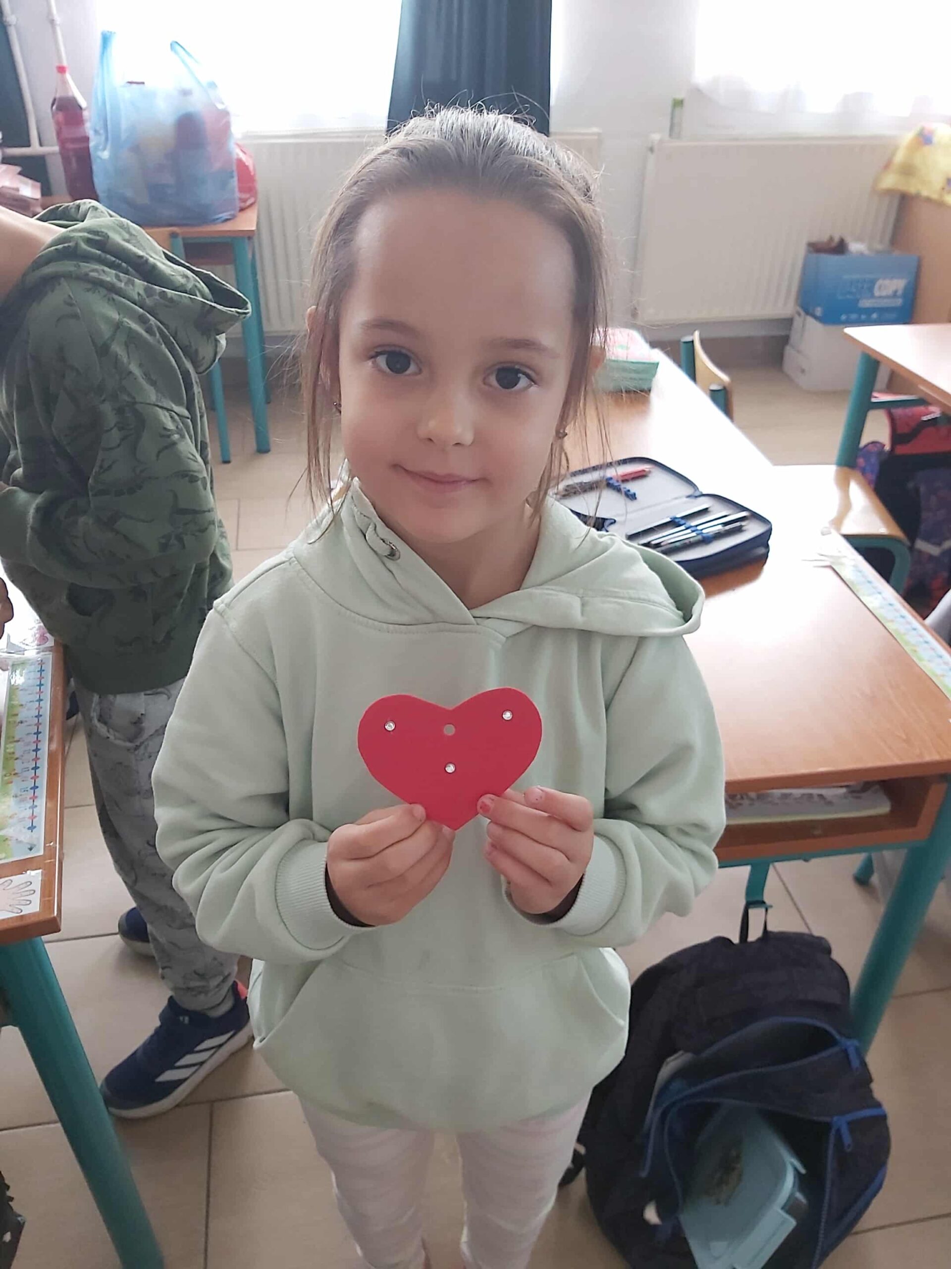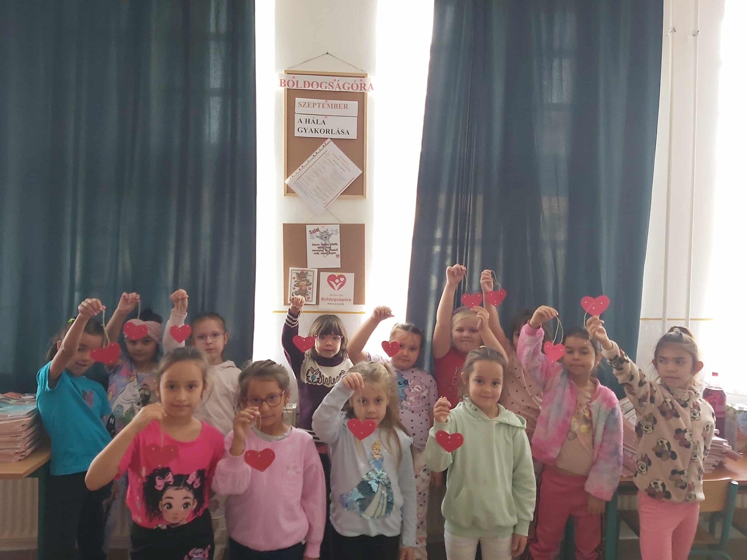 Az első osztályosok a délelőtti órák és a napközis foglakozások keretében is bekapcsolódtak a Boldogságóra foglakozásba. Szeptemberben Hálaszívet készítettek a gyerekek az anyukáknak.