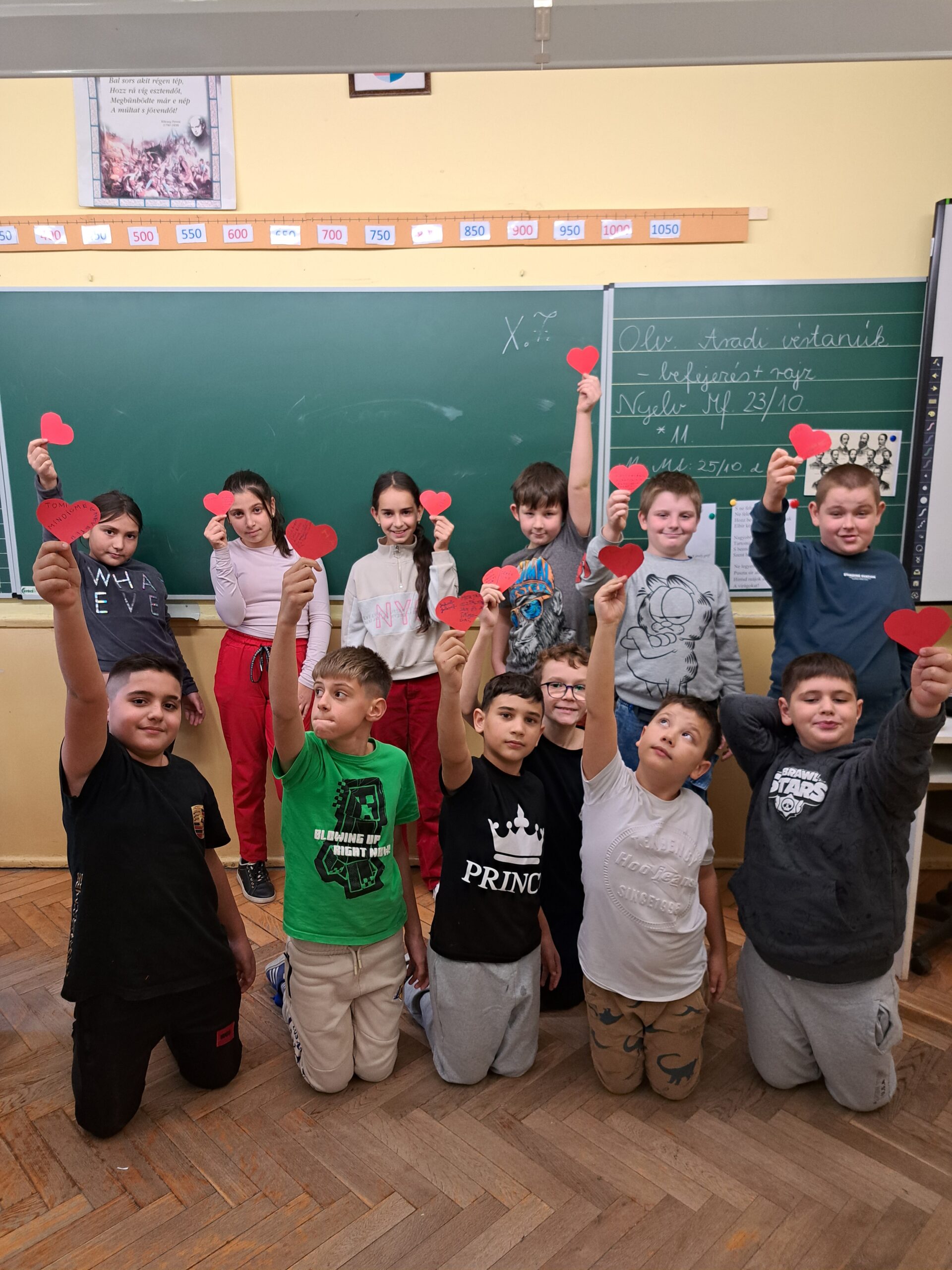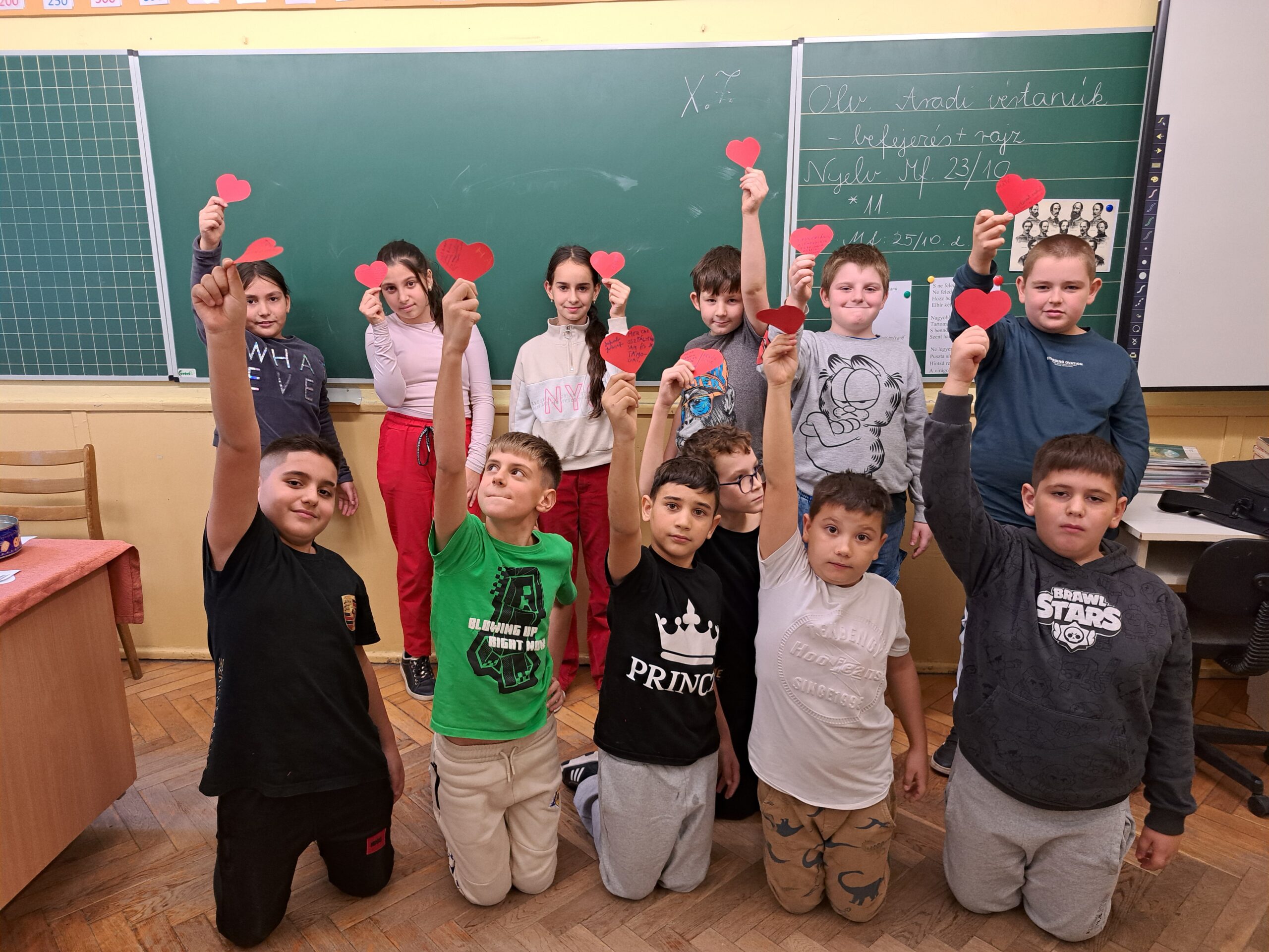 Összegezve: minden gyermek örült, amit a társa írt neki. Boldogok voltak. A szíveket felragasztottuk egy nagy kartonra. A feladat után meghallgattuk a hónap dalát. Relaxáltunk is.