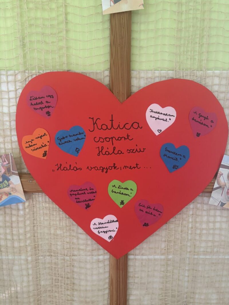 Így a beszélgetés folyamán egy gyöngyfűzést kezdeményeztem, ami a hálanyaklánc volt, és annak a személynek kellett a nyakába tenni, akinek hálásak. Valamin egy hatalmas szívecskére felírtuk, hogy ki miért hálás az életben. Sajnos kevés gyereket tudtam megkérdezni, mert többen betegek voltak.