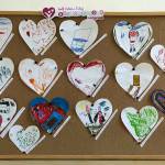 Az első témát, a hála témáját lassan vezettem be a csoportba, az első héttől kezdve gyakrabban mondtam nekik a szokásos „Köszönöm” helyett, hogy „Hálás vagyok neked amiért…”. Így könnyebben ismerkedhettek a jelentésével. Ezután egyik reggel a szokásos hangulattáblázás után ajándékkal készültem a gyerekeknek. Mindenkinek készítettem egy hálaszívecskét, amire ráírtam hogy miért vagyok nekik hálás. Ezután ezeket átadtam nekik, felolvastam a rajtuk látható szöveget és egy ölelés kíséretében átadtam nekik. Nagyon jó volt látni, hogy mennyire örültek mennyire megbecsülve érezték magukat. A szívecskék átadása után azt is elmeséltem, hogy mennyire hálás vagyok, hogy ilyen szuper gyerekek járnak a csoportomba és hogy minden napomat velük tölthetem. Erre is óriási mosolyokat kaptam válaszul, aztán pedig megkérdeztem őket, hogy ők miért hálásak az életükben. Itt nagyon kedves válaszokat kaptam. Először legtöbben az anyukájuknak mondtak hálát, de aztán megbeszéltük azt is, hogy az egyszerűbb dolgokért is milyen hálásak lehetünk. Például hogy kisütött ma reggel a nap, hogy egészségesek vagyunk, stb. A beszélgetés során a gyerekek felszabadultak és nagyon jól belemélyültek a témába. Ezután felmutattam az előre kivágott hálaszíveket, és elmondtam, hogy akinek van kedve, az lerajzolhatja hogy miért hálás az életben és ebből készítünk egy közös hálatáblát. Nagy örömömre mindenki kért tőlem szívecskét és azonnal elmélyült munkába kezdtek. Nagyon kedves, szép alkotások születtek.