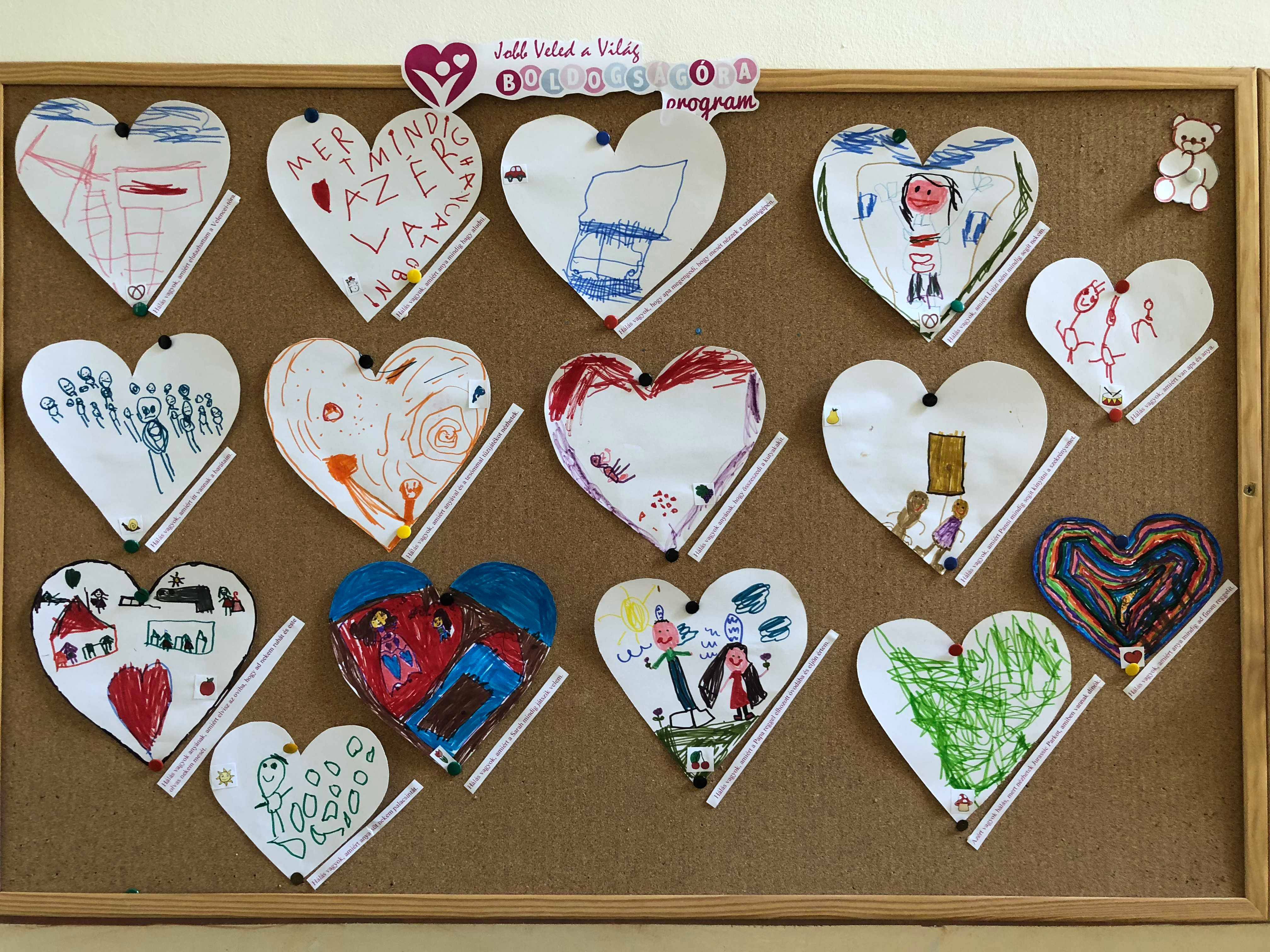 A boldogságóra foglalkozás után az egész napunk nagyon jól telt és azóta is egyre többet hallom tőlük, ahogyan a társuknak hálát adnak a segítségért. Az elkészített hálatáblánkat kiraktuk a folyosóra, ahol a szülők is megnézhették az elkészült műveket. Többen jelezték, hogy mennyire tetszett nekik, volt olyan is aki bevallotta, hogy könnyek szöktek a szemébe amikor meglátta a rajzokat és elolvasta a hozzájuk tartozó leírást.