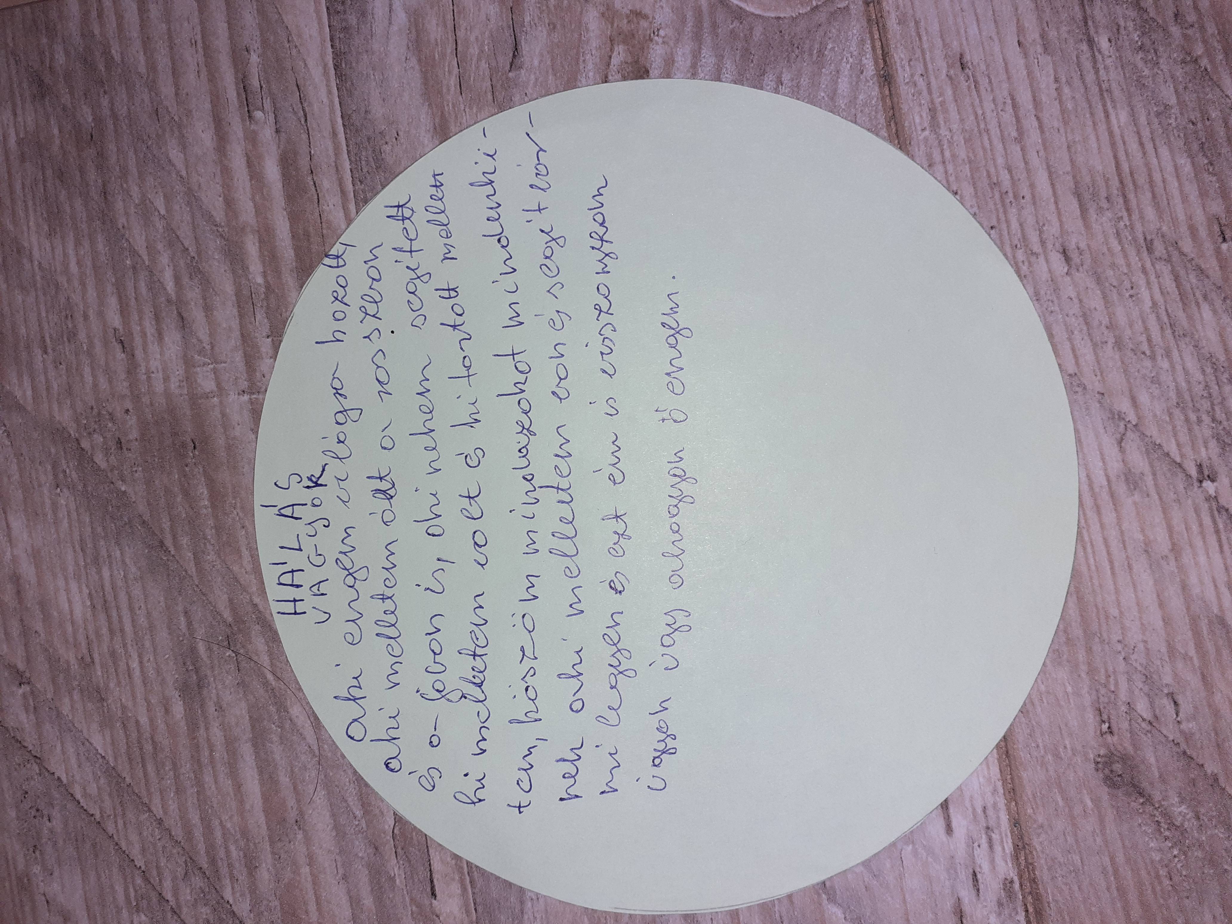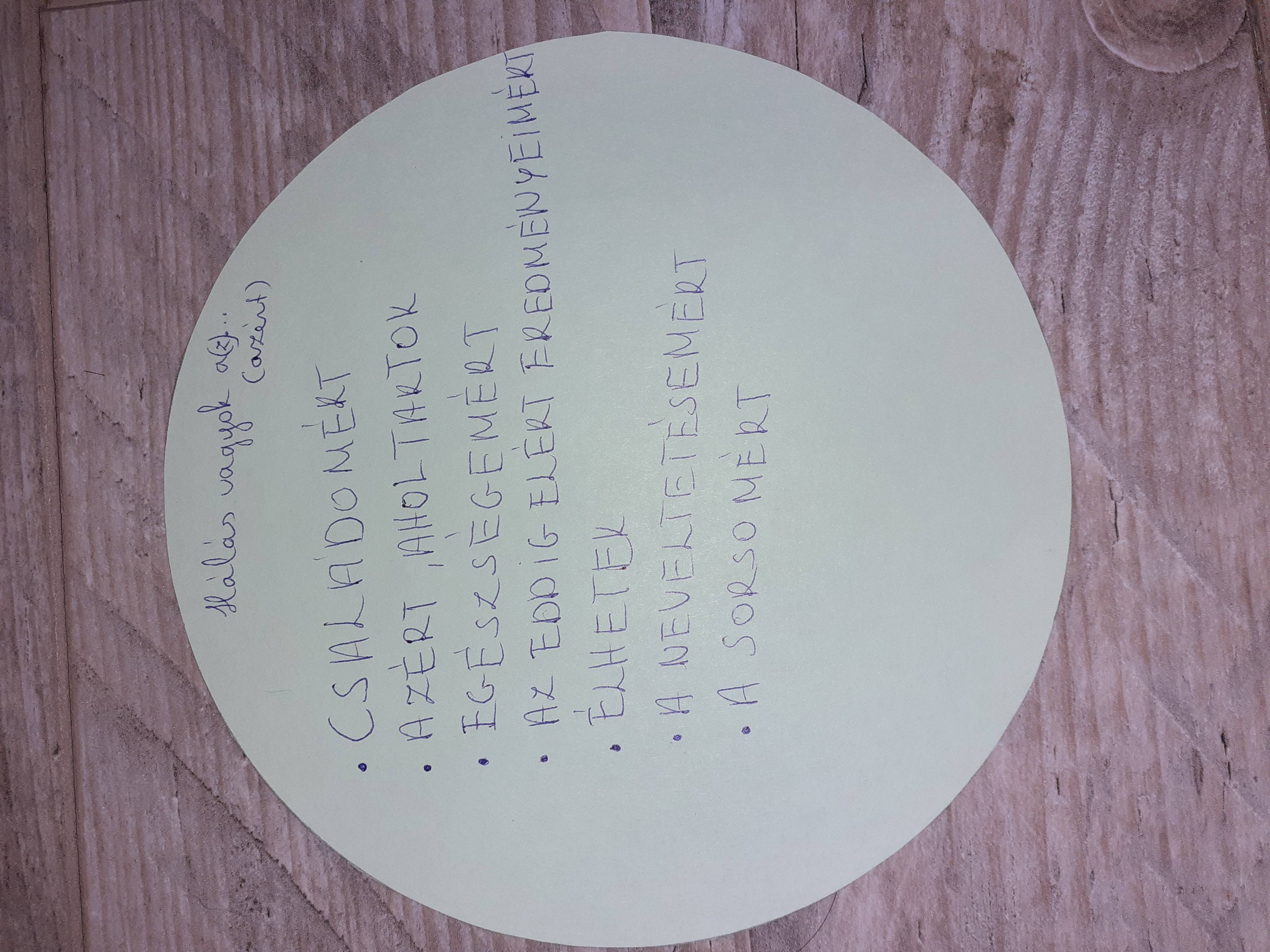 Szakképző Iskolánkban a 10.B osztállyal valósítom meg ebben a tanévben a Boldogságórát. 3 éve csinálom a programot, de soha olyan mély élményben nem volt még, mint most. Azt érzem, hogy a gyerekek nagyon is igénylik az elmélyült csendet, amikor önmagukkal lehetnek, befelé fordulhatnak, őszintén elgondolkozhatnak sorsukon, életükön. Minden órán szükség lenne egy néhány perc effajta csendre. Valami olyan ki nem mondott szövetség jött létre közöttünk, élvezték az alkotást, egyikük, Tóth Kristóf, egy etnékverset is írt, melyet közre szeretnék adni Nektek.