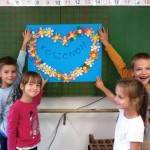 Elsős kisdiákjaink még elsősorban a szüleiknek, nagyszüleiknek hálásak a róluk való gondoskodásért. Mivel a gyerekek még nem tudnak írni, a hálavirágokba úgy kerültek bele a „nevek” (anyu, apu, mama, papa), hogy az előre nyomtatott körvonalas szavakból választhattak, és azt is kiszínezték. Még azok is nagy gondossággal, kitartóan, a szokásosnál sokkal hosszabb ideig dolgoztak, akik egyébként nem szeretik a színezést vagy az ollóval való munkát. Valóban szívük minden szeretetét beleadták ezekbe a színes virágokba.
