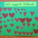Nagyméretű papírra szívecskéket ragasztottunk. Mindenki ráírta kinek hálás és miért.