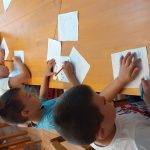 A rajzoknál, ragasztásnál, egyéb barkácsolós feladatoknál a vállalkozó kedvű kisebbek is segítenek.