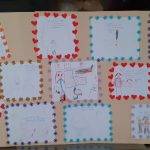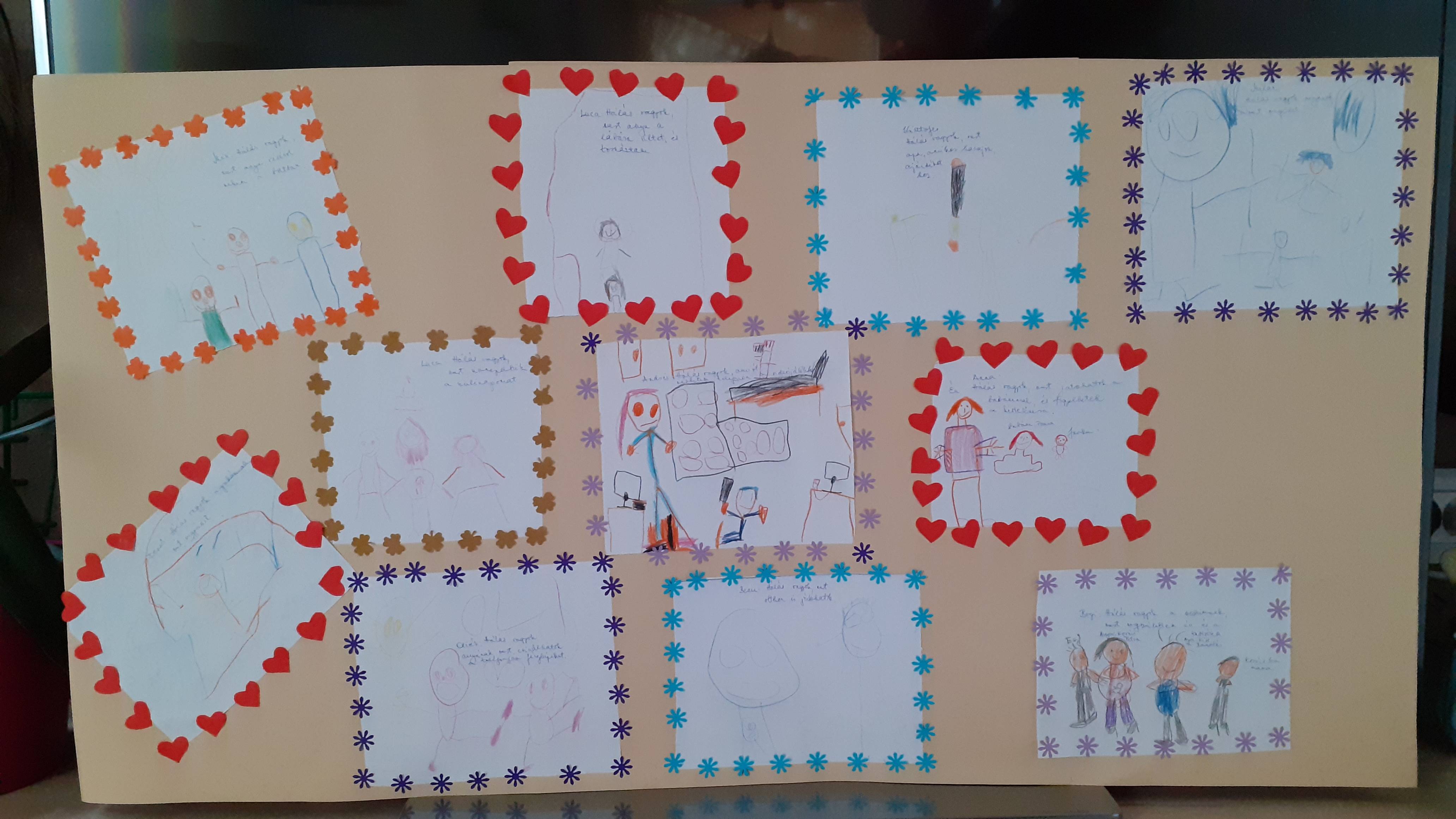 A rajzoknak kivágott formák felragasztásával keretet ragasztottak a gyerekek.