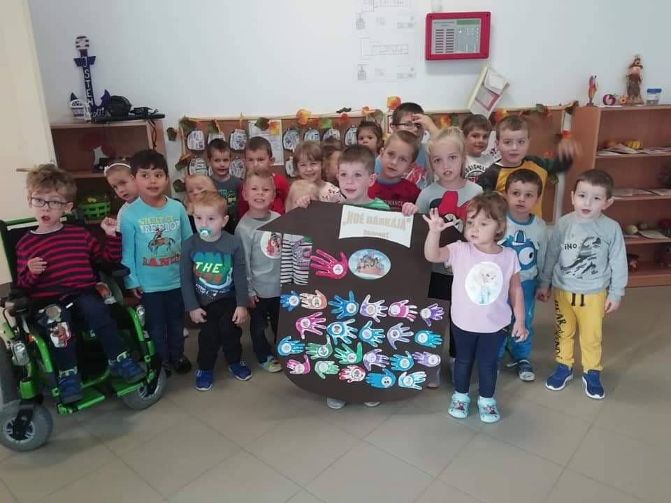 Ezután mindenki elkészítette a saját ujj- és tenyérlenyomatát. Miközben ujjaikat festették öt dologra kellett gondolniuk, amiért hálásak! A munkák befejeztével mindezeket megosztották társaikkal.