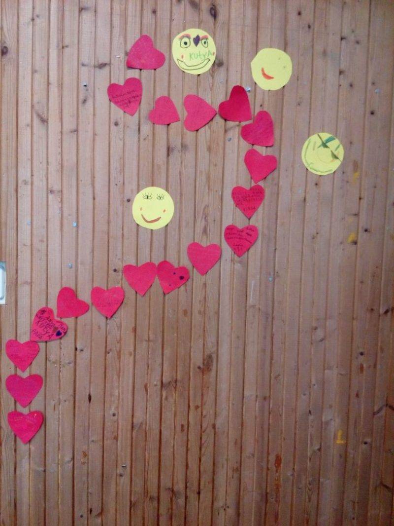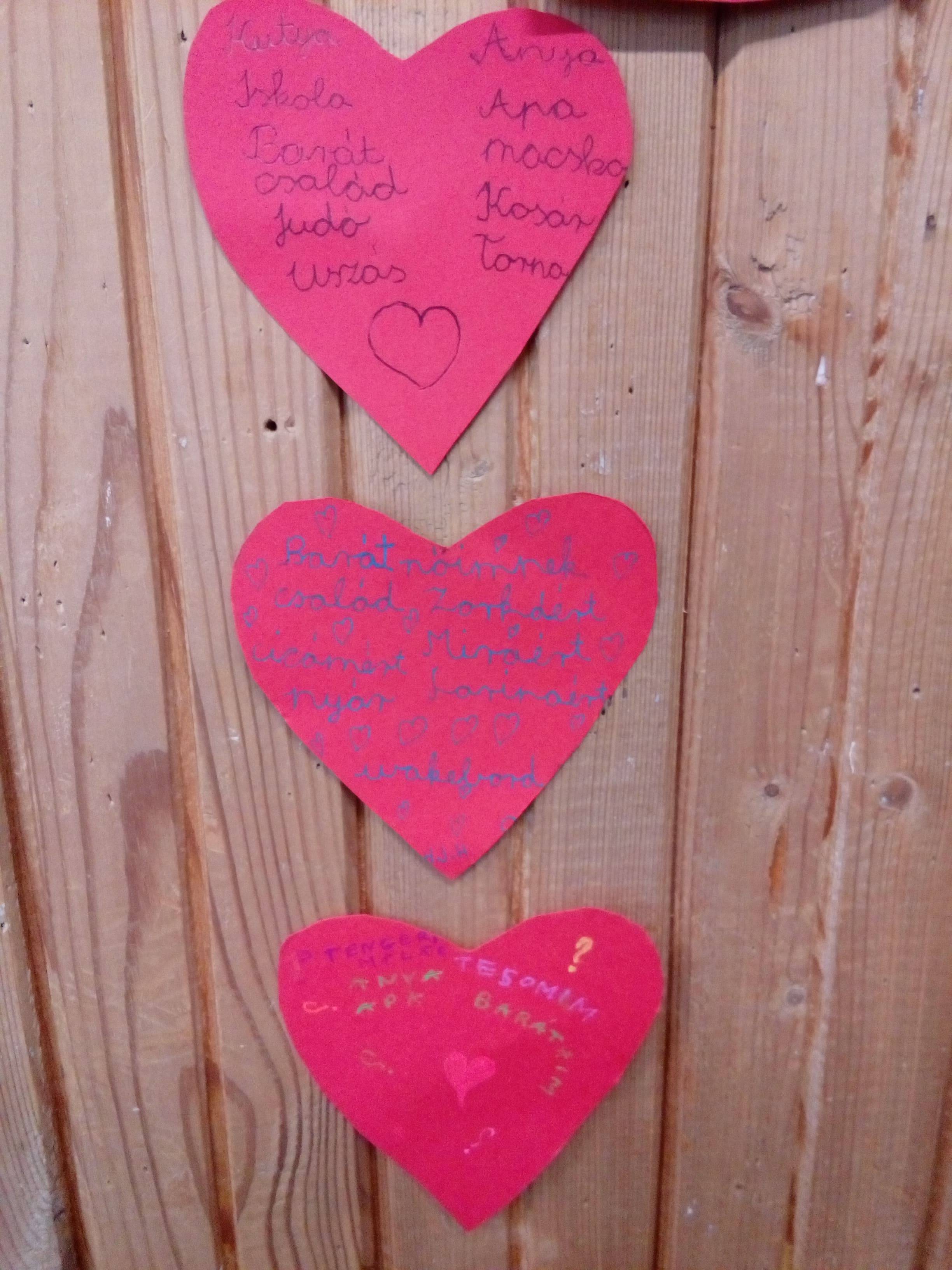 A gyerekek egy szívre felírták, hogy miért lehetnek hálásak az életükben. Ezután végiggondolták a hetüket, és odamentek azokhoz, akiknek hálásak lehetnek a héten valamiért. Egy mosolyért, egy közös játékért, bármiért. Először csináltunk ilyet az osztályban, de nagyon nyitottak voltak a gyerekek, öröm volt ott lenni velük.