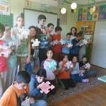 A pécsi Éltes EGYMI értelmileg akadályozott tanulóival a 2017-2018-as tanévben még nem tudtunk csatlakozni a Boldog iskola programhoz,de szeretnénk részt venni a Boldogság témák feldolgozásában.Kis csoportokat alakítottunk és havi két-két alkalommal találkozunk hogy beszélgessünk, kézműveskedjünk, énekeljünk a megadott havi témákat feldolgozva. A puzzle t és a hálavirágot már mi is elkészítettük közösen.Ezt szeretnénk megmutatni nektek.