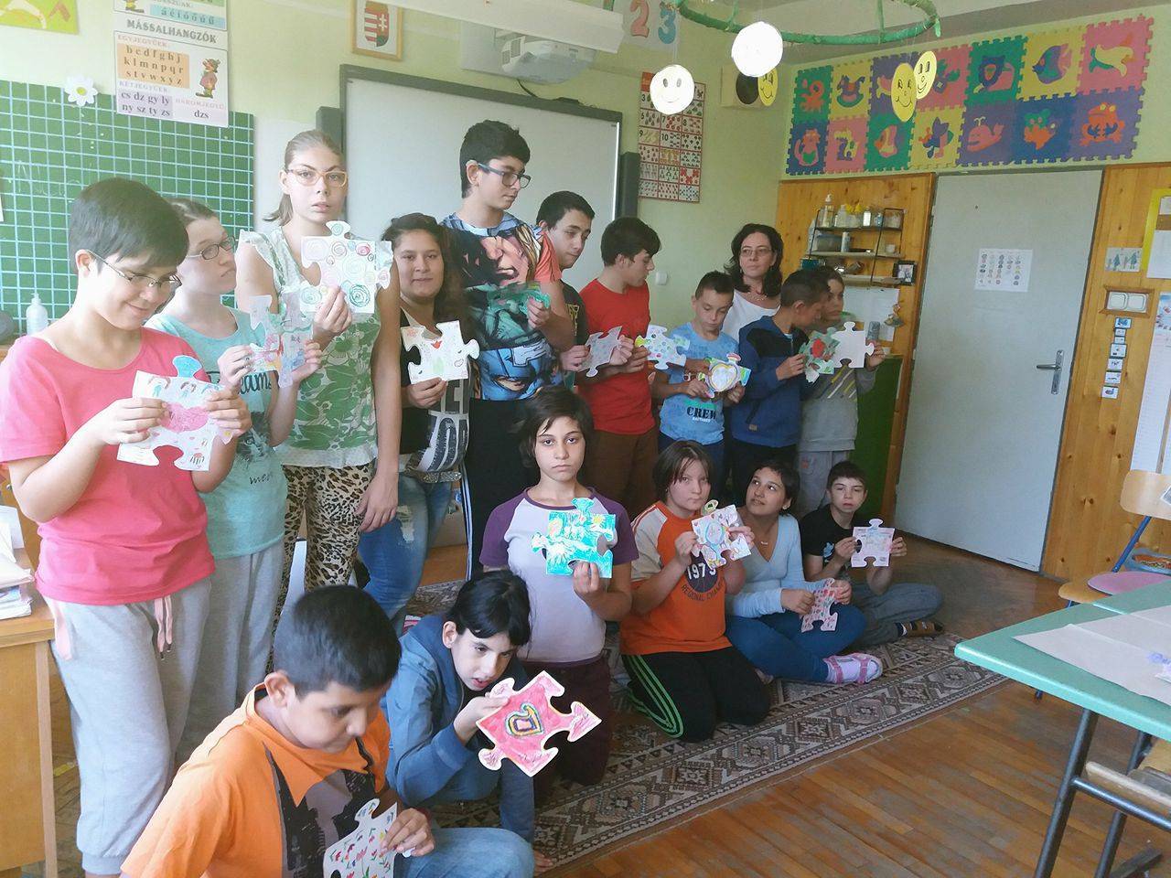 A pécsi Éltes EGYMI értelmileg akadályozott tanulóival a 2017-2018-as tanévben még nem tudtunk csatlakozni a Boldog iskola programhoz,de szeretnénk részt venni a Boldogság témák feldolgozásában.Kis csoportokat alakítottunk és havi két-két alkalommal találkozunk hogy beszélgessünk, kézműveskedjünk, énekeljünk a megadott havi témákat feldolgozva. A puzzle t és a hálavirágot már mi is elkészítettük közösen.Ezt szeretnénk megmutatni nektek.