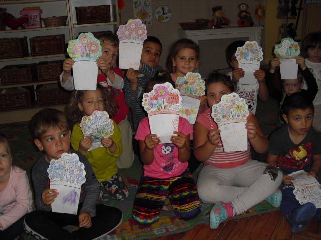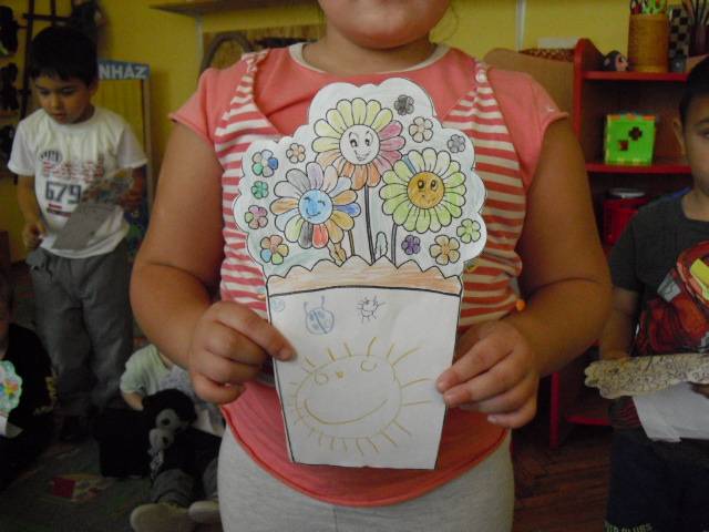 Ebben a hónapban a hálának feldolgozását az ovisoknak szóló módszertani könyv segítette. Figyelmesen hallgatták a fa történetét, és ebből vezettem le a hála fogalmát, az ehhez kapcsolódó érzelmeket. A fiatalabb gyerekek még megragadtak tárgyi szinteken (hálás a babáért, Legóért), de a nagycsoportos komolyabb tartalmakat is megfogalmaztak. Néhány gondolat: ,,Hálás vagyok, mert kistestvérem született. Boldog vagyok, mert anya és apa dolgozik, így kapok ruhát, meg játékot. Hálás vagyok, mert szeretnek. A hála virágokat kiszinezték, és a cserépre rárajzolhatták, hogyan érzik magukat, illetve mirt hálásak. A virágokat átadták az értük jövő szülőknek egy öleléssel.