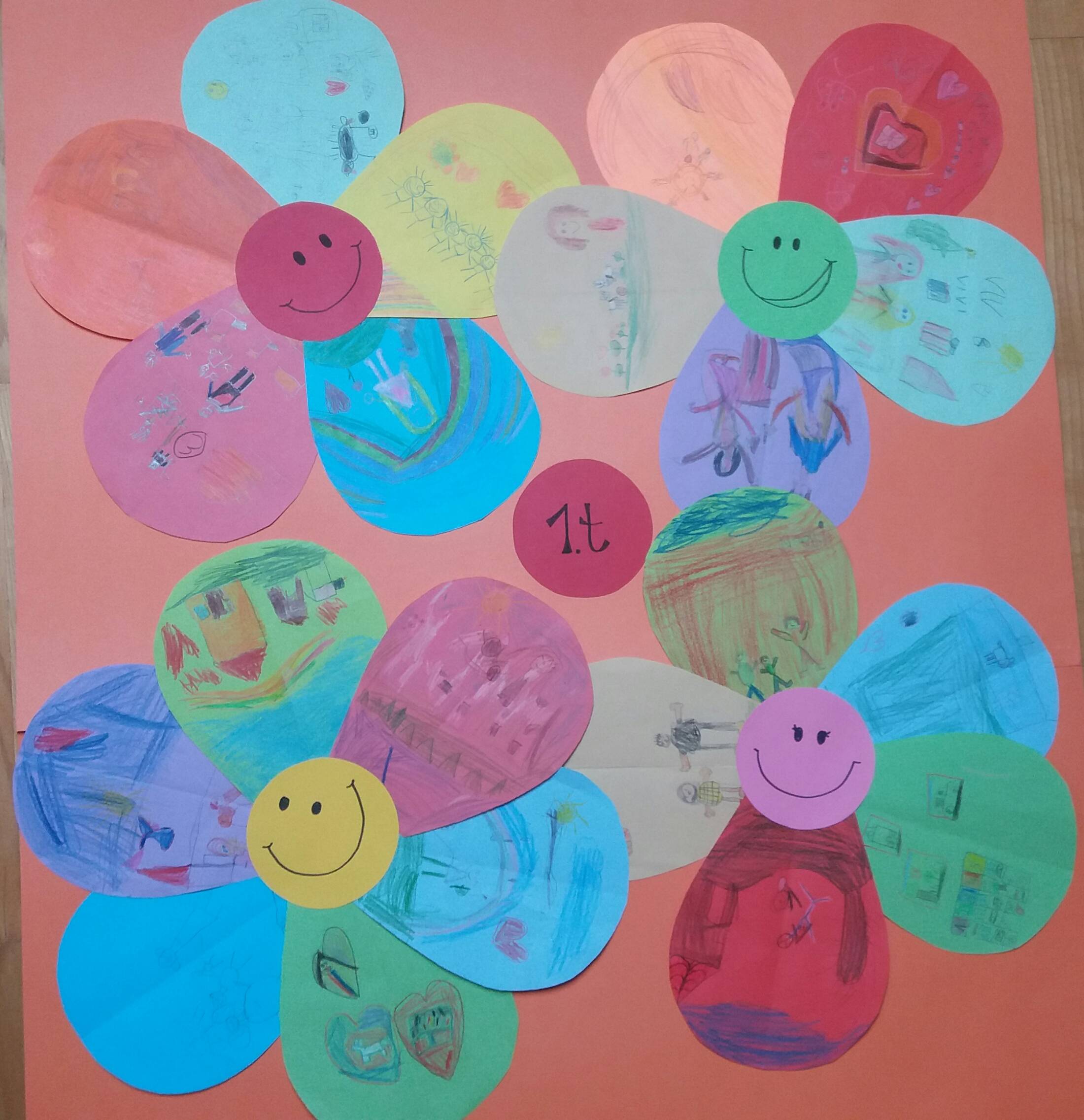 Közösen készítettük a virágainkat: minden szirmu egy- egy gyermek olyan élménye, amiért hálás. A virágoskert azóta is a termünket díszíti, emlékeztetve rá: minden nap van miért hálásnak lenni!