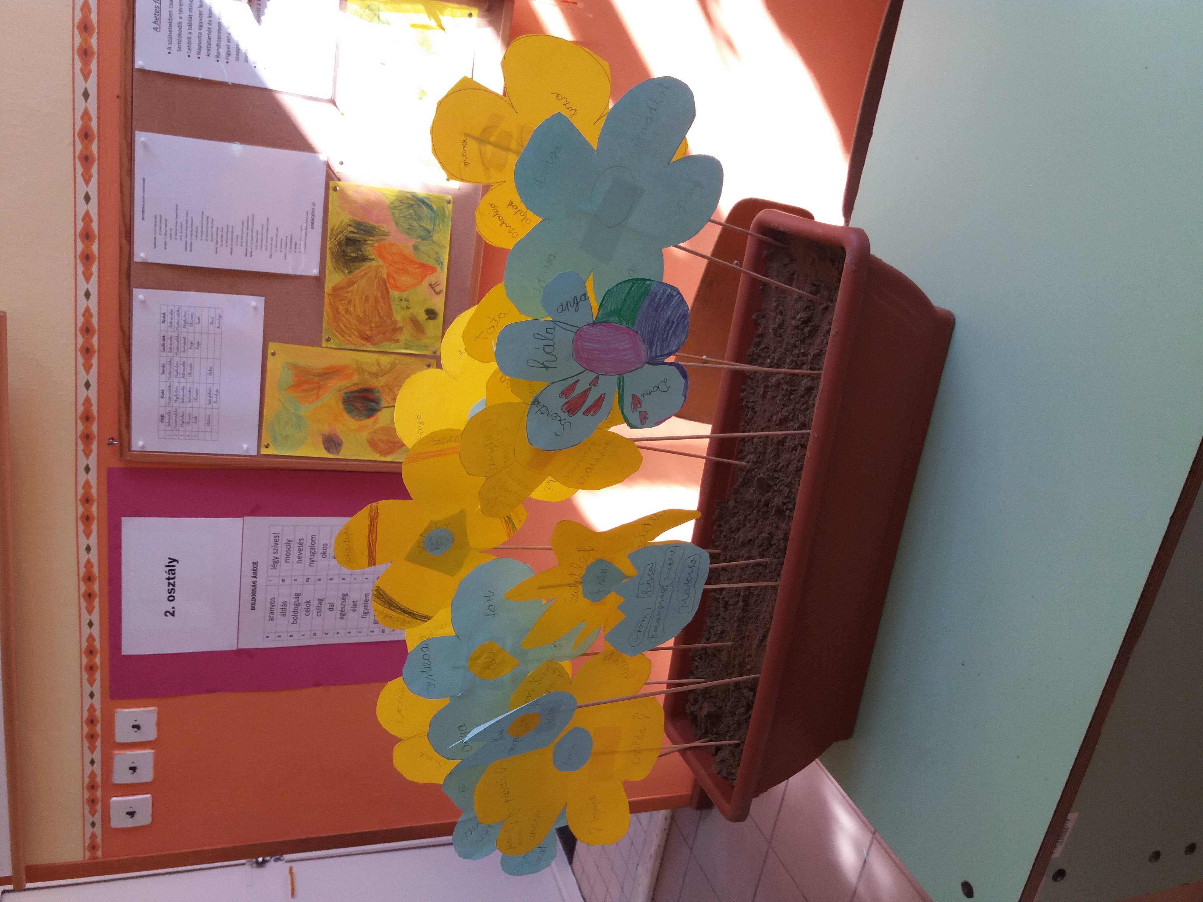Papírvirágokat készítettünk, amire ráírtuk azokat a dolgokat, amiért hálásak lehetünk!