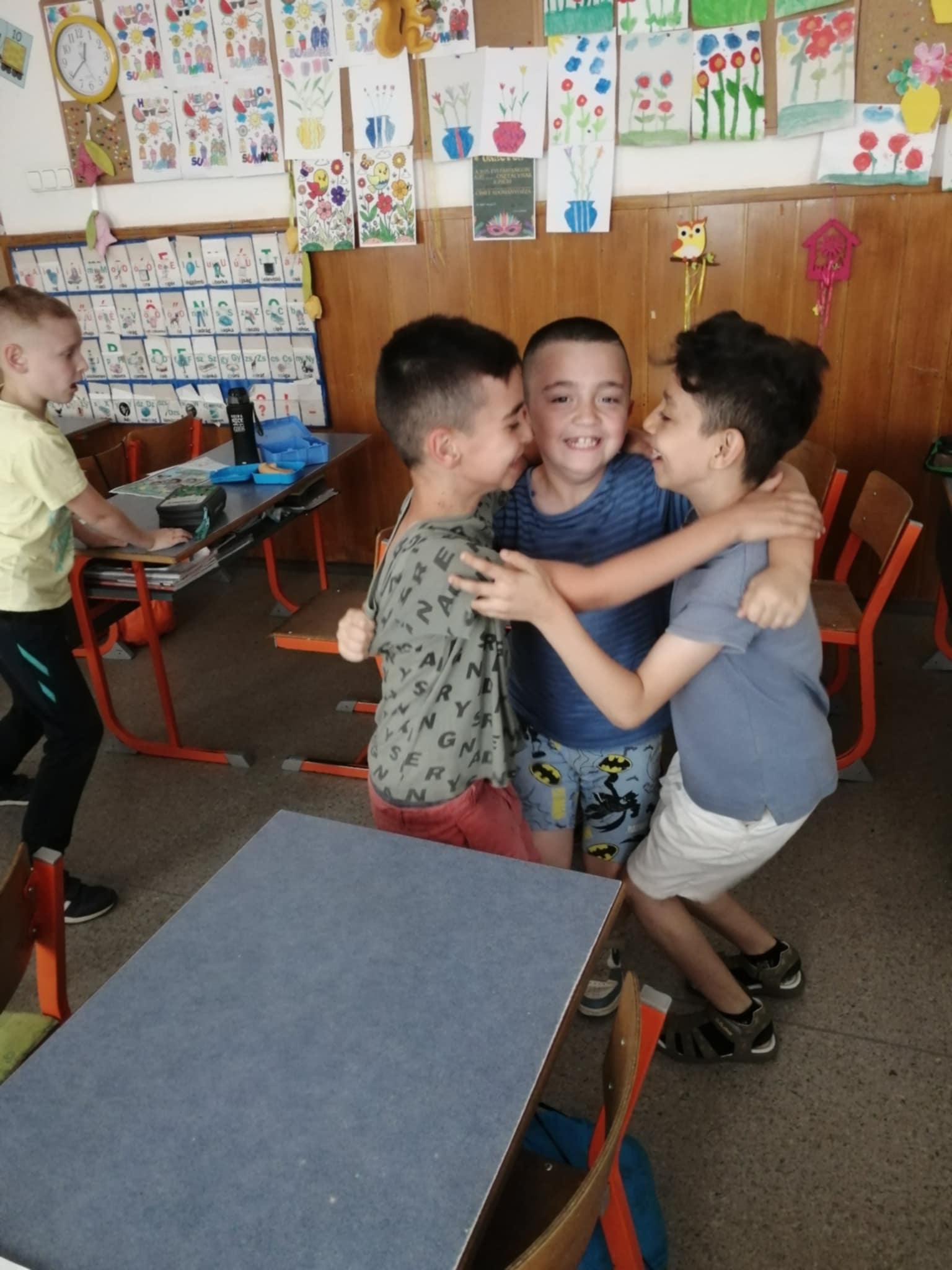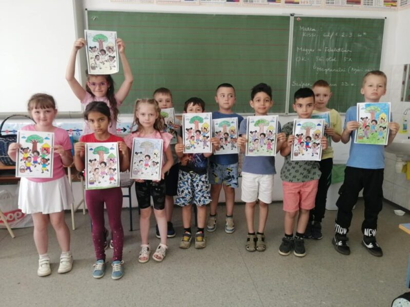 A tanév utolsó hónapjának boldogságóráin megbeszéltük a fenntartható boldogság jelentését és hogy milyen nagy próbatétel ezt megőrizni és fenntartani a mindennapokban. Elolvastam nekik az Ubuntu c. afrikai történetet is, mely a tartós boldogság kulcsáról és az összetartozásról szólt. A gyerekeket mélyen megérintette ez a történet, elgondolkodtak, hogy így is lehet együttműködni egymással, segíteni a másikat, örülni az együtt elért sikernek. Örömmel színezték a mellékletben található rajzot, majd kitettem egy kis kekszet a terem végében lévő polcra, melyet mondtam, hogy a leghamarabb odaérő gyerek megehet, az övé lehet. Természetesen a történet hatására ők összefogództak és együtt fogyasztották el a megérdemelt édességet. Június hónapban is meghallgattuk a hónap dalát, mely néhány gyereket táncra is penderített. Köszönjük, hogy fejlődhettünk, nevethettünk, együtt gondolkodhattunk a tanév során a boldogságórák jellemet fejlesztő, értéket teremtő, lelki egyensúlyt hozó programja által.