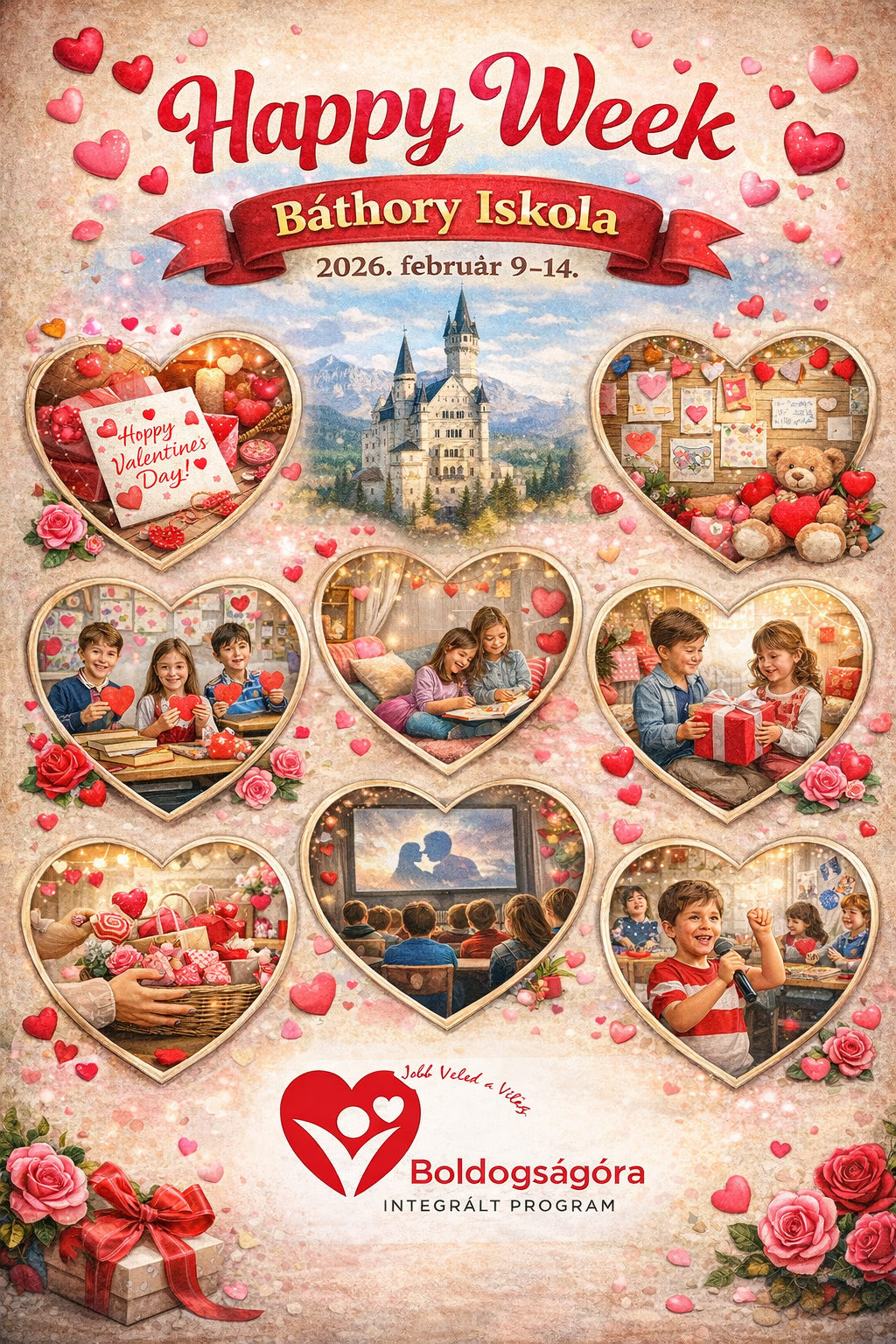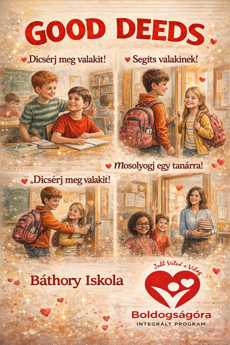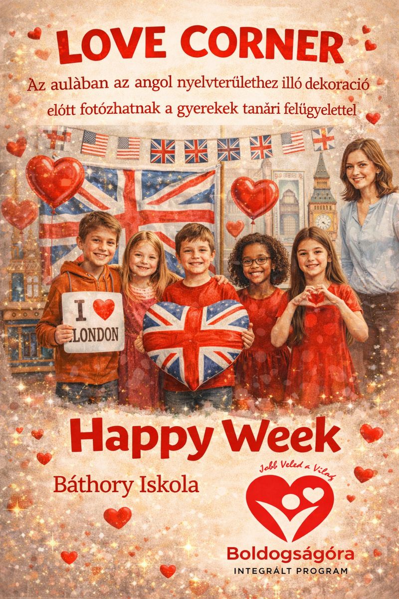 A veszprémi Báthory István Sportiskolai Általános Iskola 10. boldog jubileumi évének rendezvényei a teljes tantestület és a diákönkormányzat támogatásával zajlanak a tanév során. A rendezvények szervezésébe az angolt tanító kollégák is bekapcsolódtak, Kapus Ildikó állította össze a 2026-os „Happy Week” elnevezésű iskolai eseménysorozat programtervét , amely a Valentin-nap köré épül. A diákok számos kreatív feladatban vehetnek részt, például angol nyelvű üdvözlőkártyák készítésében, szókereső versenyen, vagy a legiccsesebb ajándékok szemléjén. Az intézmény közösségi élményeket is kínál, így a tanulók üzeneteket küldhetnek egymásnak a Love Chest ládába, véleményt nyilváníthatnak az iskola szeretetéről, és közös fotózáson vehetnek részt piros ruhában. A kezdeményezés hangsúlyozza a kedvességet és a segítőkészséget a mindennapokban, miközben játékos formában fejleszti az idegennyelvi készségeket. A versenyek eredményhirdetésére és a jutalmak átadására a farsangi mulatság keretében kerül sor.