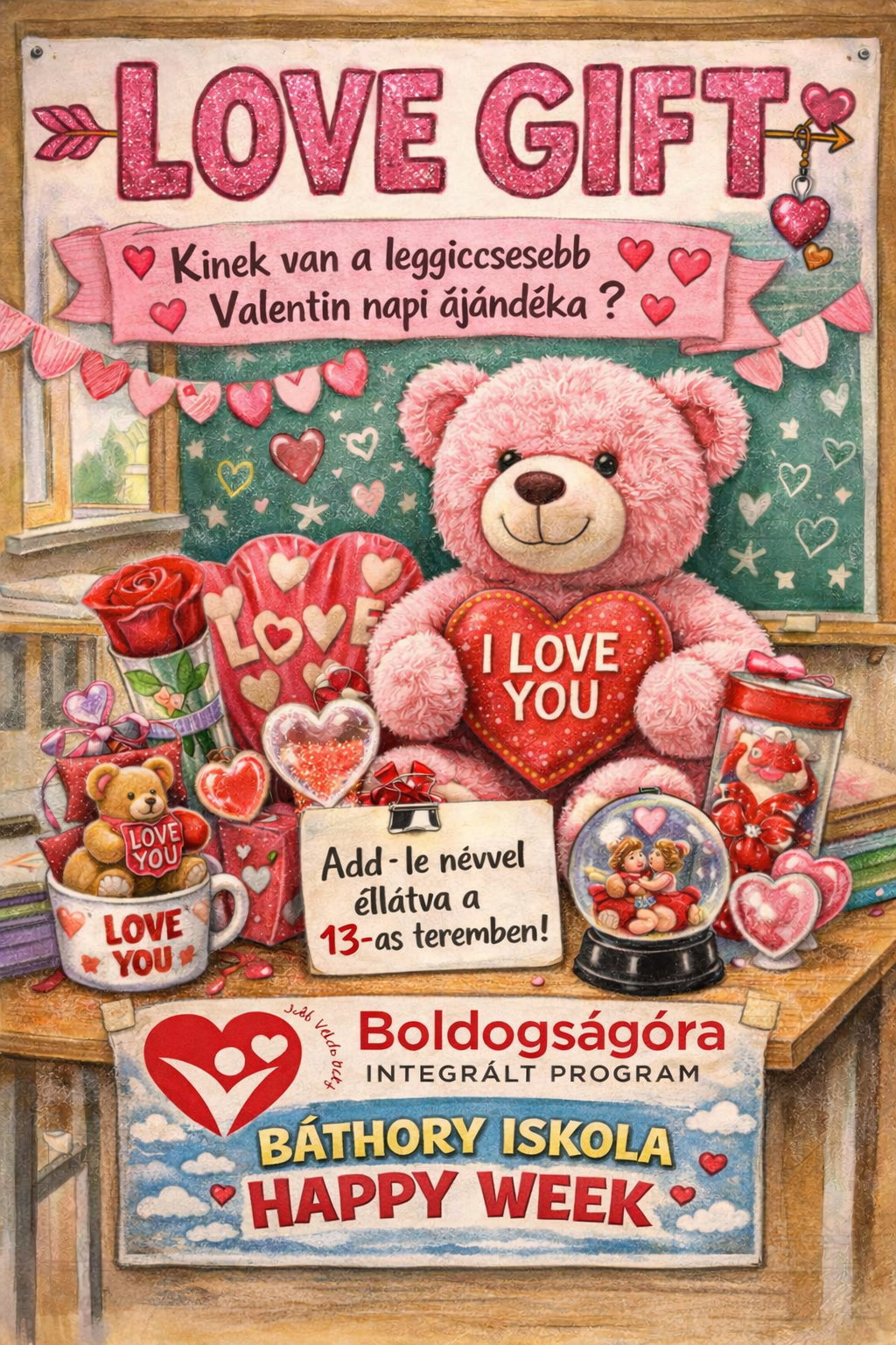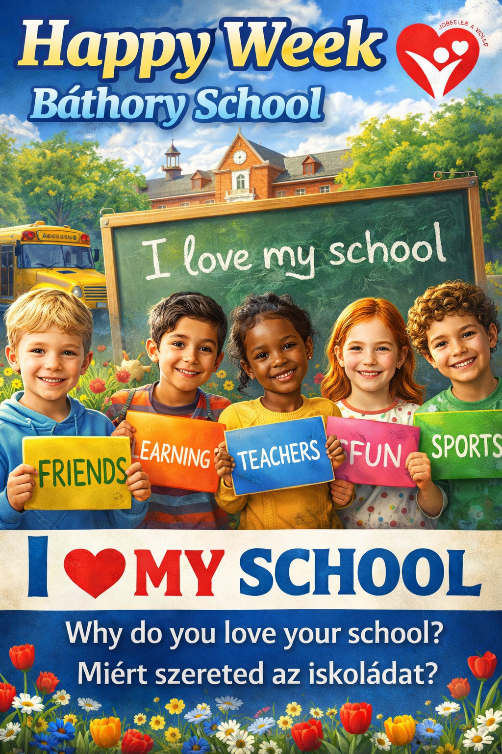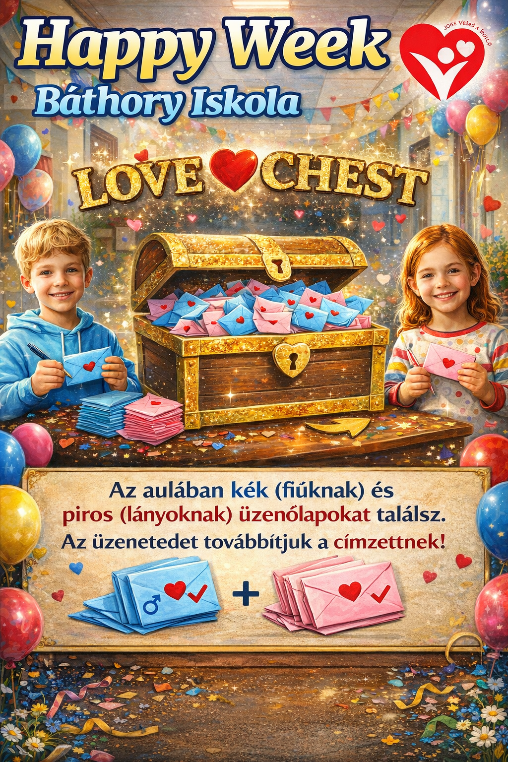A veszprémi Báthory István Sportiskolai Általános Iskola 10. boldog jubileumi évének rendezvényei a teljes tantestület és a diákönkormányzat támogatásával zajlanak a tanév során. A rendezvények szervezésébe az angolt tanító kollégák is bekapcsolódtak, Kapus Ildikó állította össze a 2026-os „Happy Week” elnevezésű iskolai eseménysorozat programtervét , amely a Valentin-nap köré épül. A diákok számos kreatív feladatban vehetnek részt, például angol nyelvű üdvözlőkártyák készítésében, szókereső versenyen, vagy a legiccsesebb ajándékok szemléjén. Az intézmény közösségi élményeket is kínál, így a tanulók üzeneteket küldhetnek egymásnak a Love Chest ládába, véleményt nyilváníthatnak az iskola szeretetéről, és közös fotózáson vehetnek részt piros ruhában. A kezdeményezés hangsúlyozza a kedvességet és a segítőkészséget a mindennapokban, miközben játékos formában fejleszti az idegennyelvi készségeket. A versenyek eredményhirdetésére és a jutalmak átadására a farsangi mulatság keretében kerül sor.