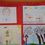 A következő órán hétköznapi hősök megküzdési stratégiáiról beszélgettünk. Szembeállítottuk őket a filmek hőseivel. Megbeszéltük valódi érdemeiket. Ezután lerajzoltuk a hőseinket hőstetteik közben. Az órát relaxációval zártuk.