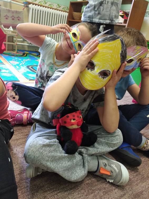 Miután elmentek,megbeszéltük, mit jelent a hála, ki milyen szuperhőst ismer a mesékből, és vajon rajtuk kívül kik lehetnek még hősök, akiknek hálával tartozunk a cselekedeteikért.( Pl. tűzoltó, rendőr, orvos, anya, apa,..stb.,) és akár még ők is, ha valami jót cselekednek valakivel, amiért hálásak lehetünk. Nosza kaptuk magunkat és mi is megrajzoltuk saját hálaálarcunkat, amit az udvaron kisebb társaiknak odaadtak kipróbálásra. Nagyon jól telt ez a két nap,a gyerekekkel együtt hálásak vagyunk,hogy részesei lehetünk ennek a közösségnek.