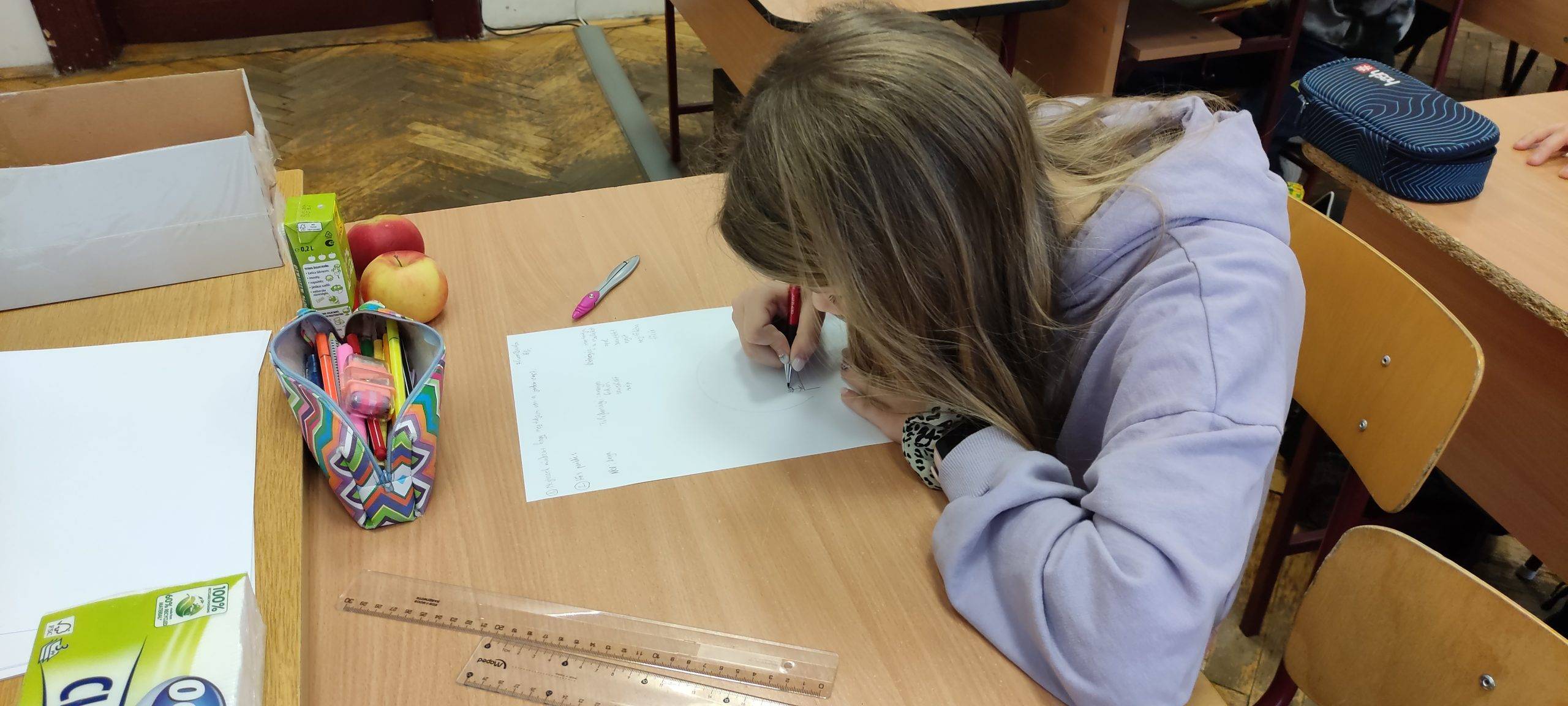 A bevezető relaxációs gyakorlat után elolvastuk a Szamár története című szöveget, amely felhívta a gyerekek figyelmét a nehéz helyzetekben való hozzáállásra. Majd elemeztünk egy a témához kapcsolódó képet. Végül a Hősparádé című feladat megoldása során a diákok elkészítették a hőstulajdonságokat kifejező matricákat.