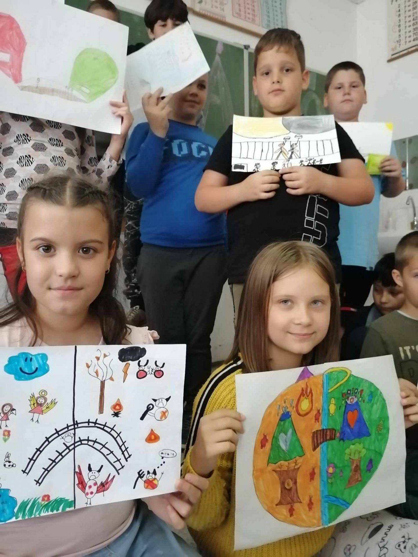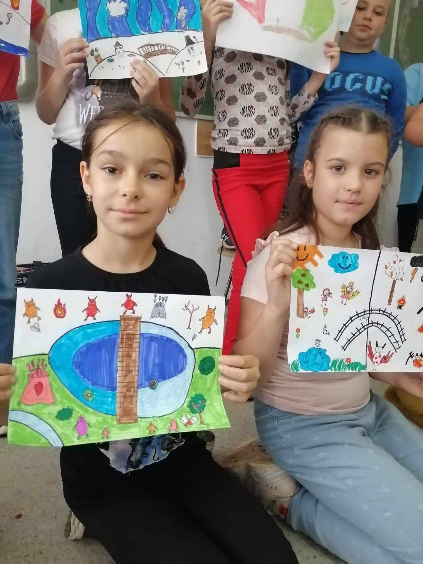 Az órán a Hősök Hídját valósítottuk meg rajzos formában. A Híd feladata az volt, hogy a Bosszúságok szigetén ragadt lényeket az Örömparkba vezesse. A vezetőknek kreatívnak és bátornak kellett lennie ahhoz, hogy meggyőzzék a Bosszúság szigetén lévőket a negatív gondolataik, érzéseik elhagyására, türelmesebb, kedvesebb, elnézőbb gondolkodási formára ösztönözve őket. A rajzolás közben a gyerekek leginkább szüleiket nevezték meg, akik olykor a bosszúság szigetére tévednek az élet mindennapi nehézségeinek során. Főként az utakon tapasztalható negatív vezetési morál, a kiadásokkal, anyagi nehézségekkel járó problémák űzik őket a bosszúság szigete felé. Szerencsére gyermekeik kedvességükkel, humorukkal, pozitív gondolkodásukkal igyekeznek visszaterelni minden eltévedtet az Örömszigetre! 🙂