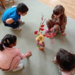 A foglalkozást, az „Almát szedj, ügyesedj, szőlőt szedj, ügyesedj…” relaxációs gyakorlattal indítottuk, majd Bagdi Bella: Pozitív gyerek vagyok című dalát meghallgattuk. Körbe járva, táncoltunk. A zenére törpe és óriás járással bejártuk a csoportszobát. A mozgásos játékból kezdeményeztem a Bezzeg Andrea: „Tódi törpe: Szebben látó mondókája” című vers meghallgatását. Ennek kapcsán beszélgettünk a pozitív életszemléletről, az optimista gondolkodásmódról, majd elkészítettük a varázsszemüvegeket, melyeket azonnal kipróbáltuk. Elmondtuk, hogy hogyan tudjuk mindennek a jó oldalát észrevenni, meglátni, illetve hogyan tudjuk jóra fordítani a történetet. Elkészítettük a Szomorú Szilárd és Boldog Blanka bábokat is. A hónap során, többször elővettük a „varázsszemüveget”, amit az adott helyzetekben, többek között a gyermekek bátorítására, ösztönzésére használtunk. Végül, az optimizmus jelét felhelyeztük a lépcsőnkre.