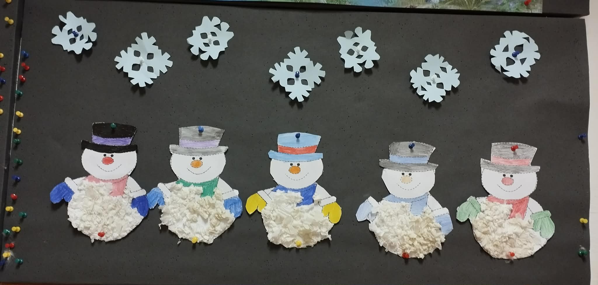 Micimackó egy téli történetével, illetve az időjárás segítségével is ihletet kaptunk a Hóemberek napjának megtartására. Célként egy hóember család elkészítését tűztük ki. Sajnos sok tanuló volt beteg ebben az időszakban, így nem lett teljes a család. Megbeszéltük, megterveztük az elkészítés lépéseit. Majd elkészítettük őket.