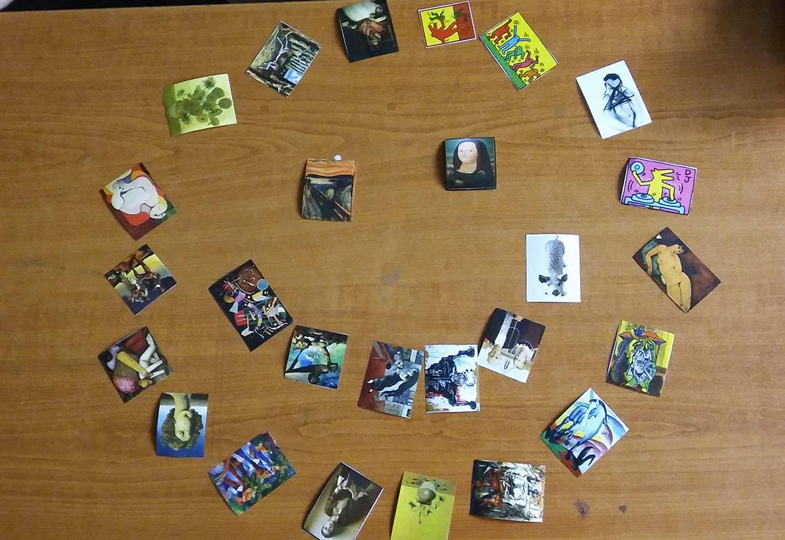 Bevezetésként alkalmaztam ezt a feladatot, 20. századi műalkotások reprodukciói közül kellett kiválasztani azt a képet, amely legjobban kifejezi a hangulatunkat. Utána beszélgettünk, hogy mit miért választottak, és, hogy hogyan érezhetjük magunkat jobban, például, ha átgondoljuk, hogy kinek és miért lehetünk éppen most hálásak.