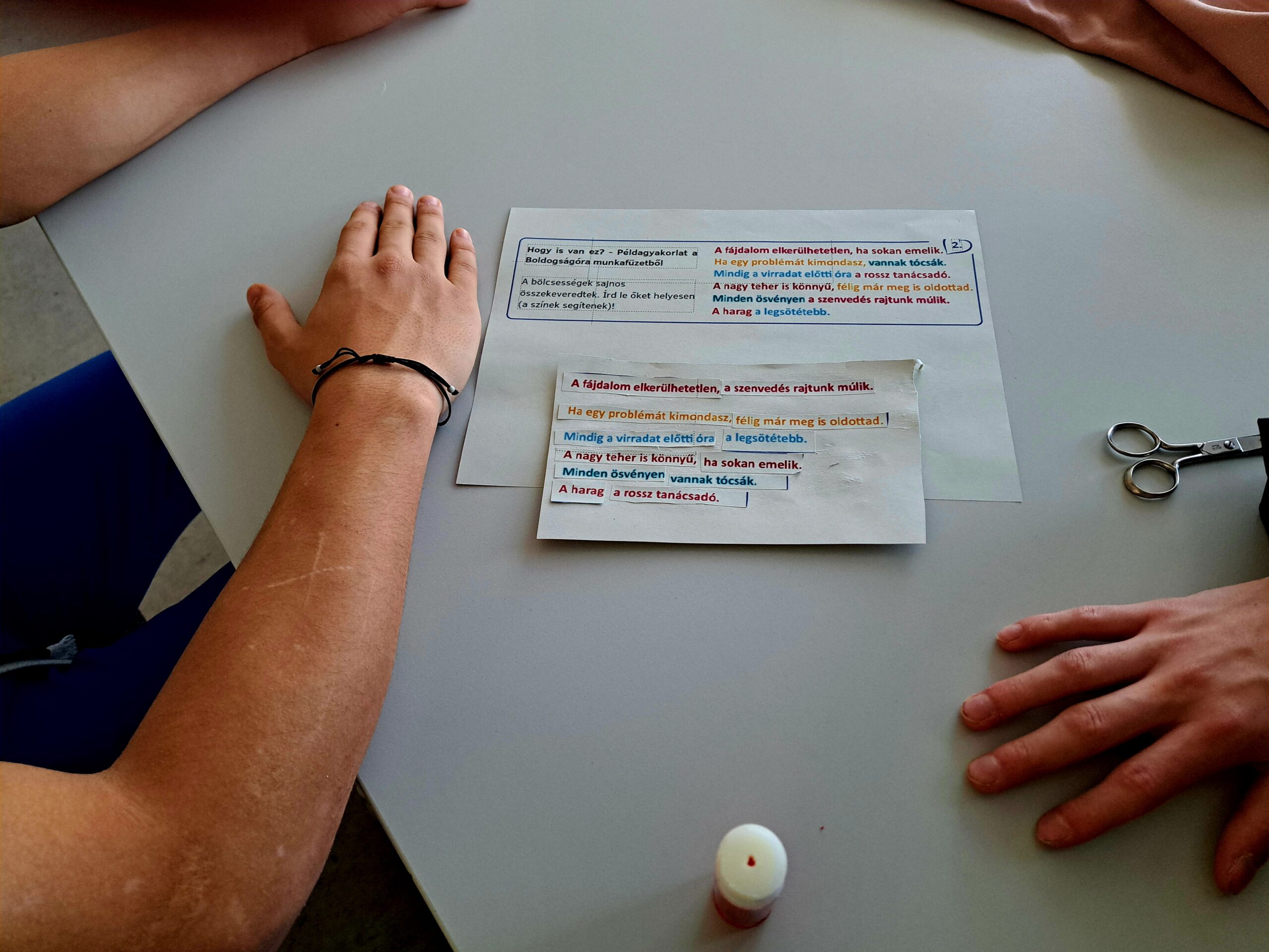 Nagyon élvezetes volt a feladat számunkra. Külön öröm, hogy a gyakorlati, praktikus dolgokat: a színek felismerését, a vágást és a ragasztást összekapcsoltuk a beszélgetéssel. Így mindenképpen jobban rögzülnek a bölcsességek adta jó túlélési ötletek, technikák és megküzdési stratégiák.
