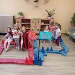 1. Mesebeli palota megépítése előre meghatározott minta alapján (matematikai tapasztalatszerzés-építések megadott minta szerint, geometriai formák gyakorlása, kisebb-nagyobb méretbeli összehasonlítások végzése)