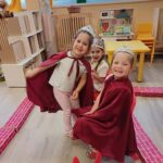 6. Eszközökön, ruhákon való osztozkodás. Kiegészítők kipróbálása, átadása a társaknak. Irigység leküzdése, közös játék élmény konfliktusok nélkül. Készülődés a bálba. Boszorkány leküzdése dalokkal és zenével- hangszerek visszaszerzése, a palota megtöltése zenével. A titkos láda kinyitása, hangszerek megtalálása és használata. (Ének-zene, népi játék, tánc)